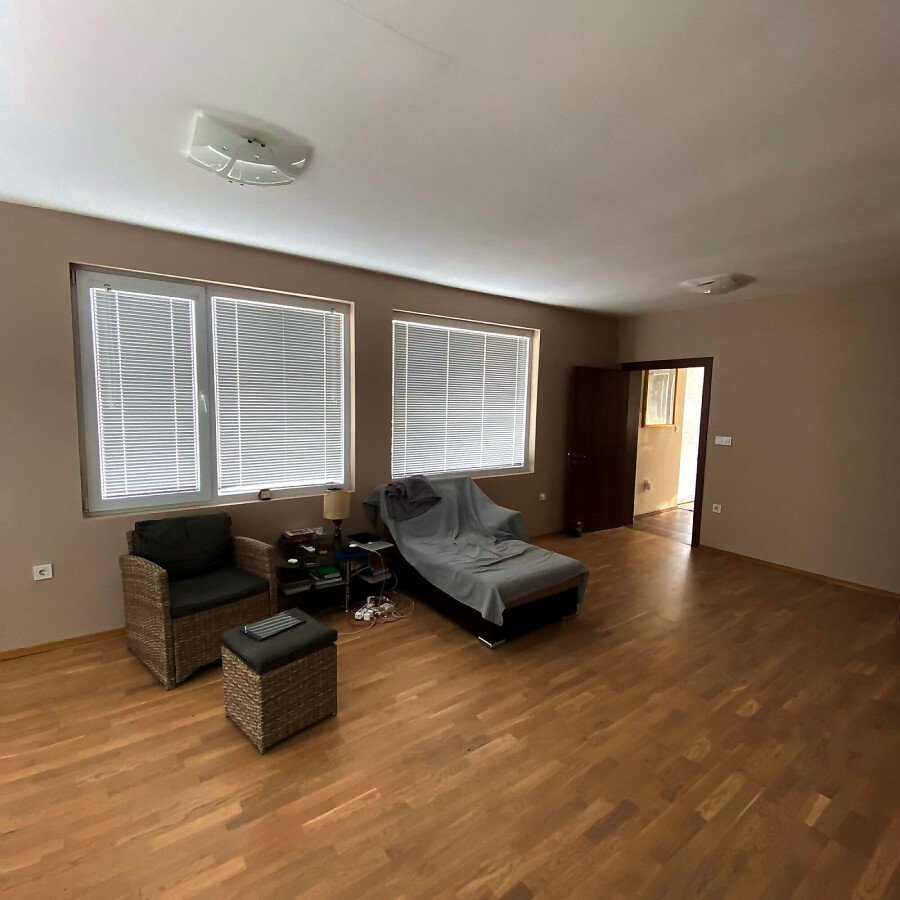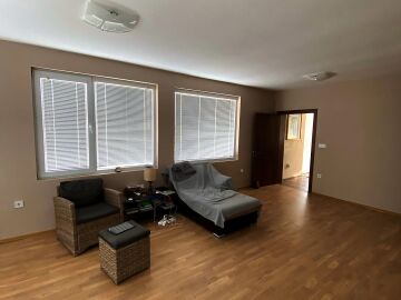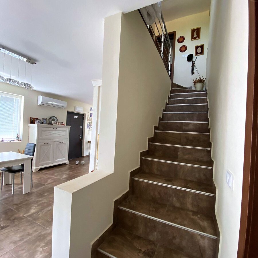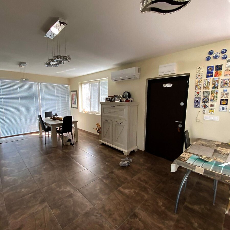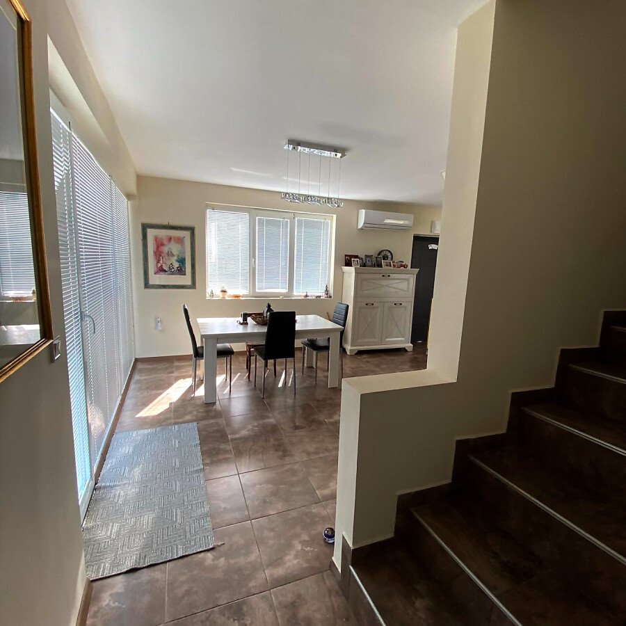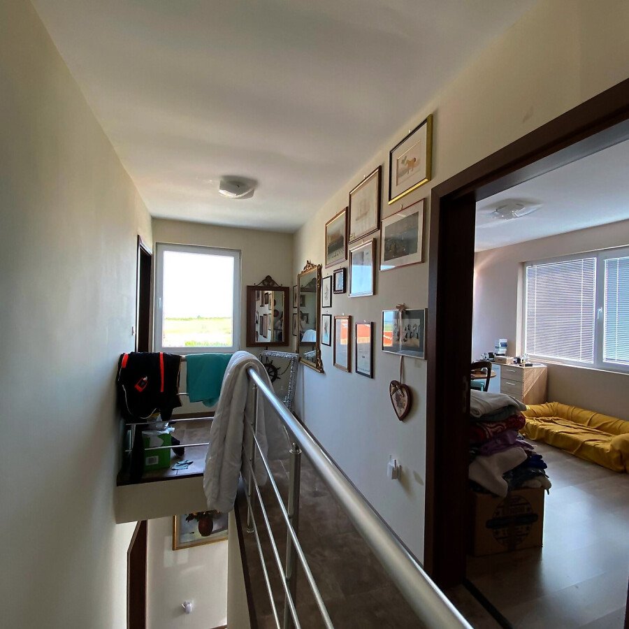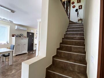 Площта на парцела е 1000 кв.м., от които 200 кв.м. е къщата с гаража и пералното помещение. Къщата се състои от два етажа. На първия етаж е разположен огромен хол с кухня и трапезария, външна веранда с места за отдих и почивка, една спалня с баня към нея и складово помещение. На вторият етаж са разположени три стаи, от които две спални и един офис и една баня. Една от спалните разполага с дрешник.