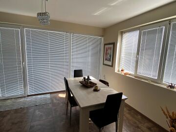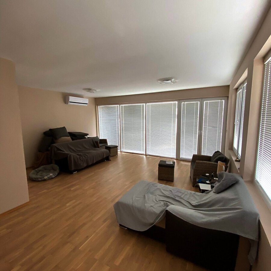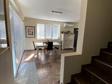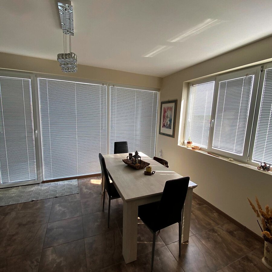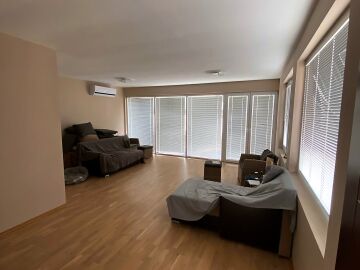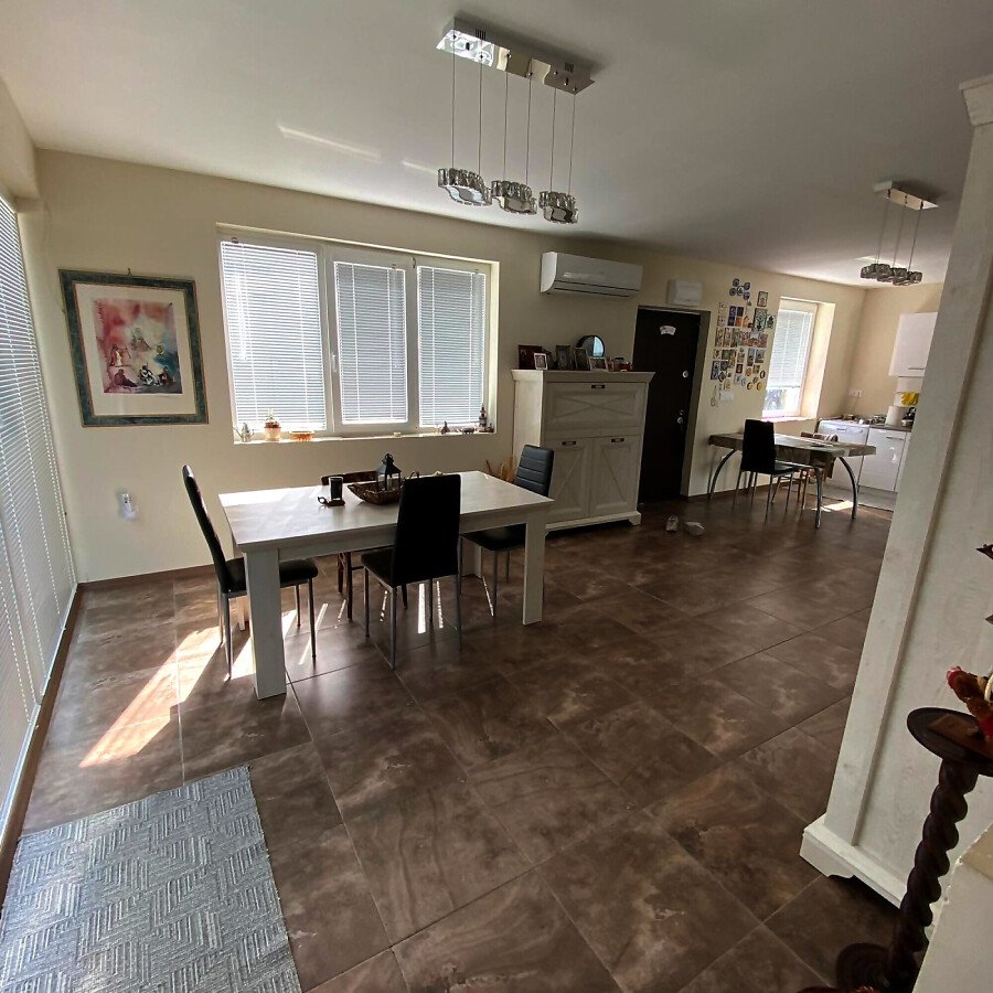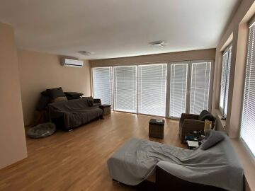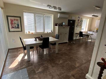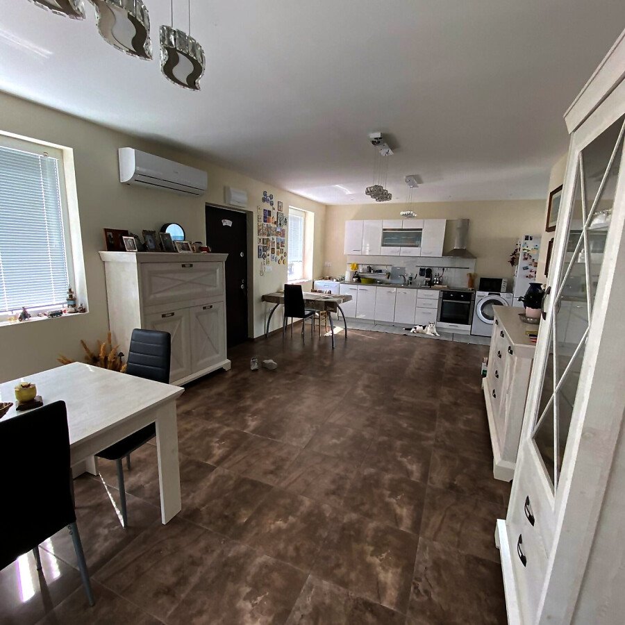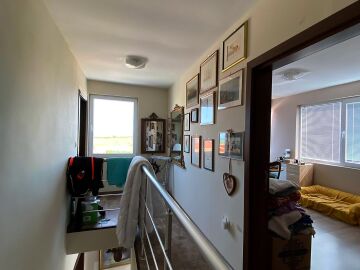 Площта на парцела е 1000 кв.м., от които 200 кв.м. е къщата с гаража и пералното помещение. Къщата се състои от два етажа. На първия етаж е разположен огромен хол с кухня и трапезария, външна веранда с места за отдих и почивка, една спалня с баня към нея и складово помещение. На вторият етаж са разположени три стаи, от които две спални и един офис и една баня. Една от спалните разполага с дрешник.