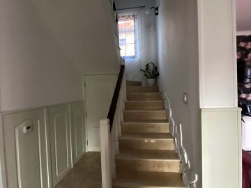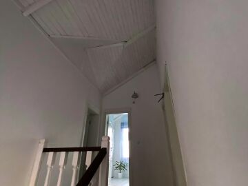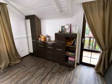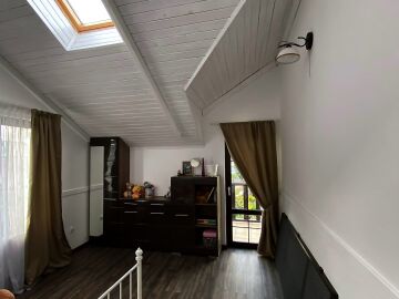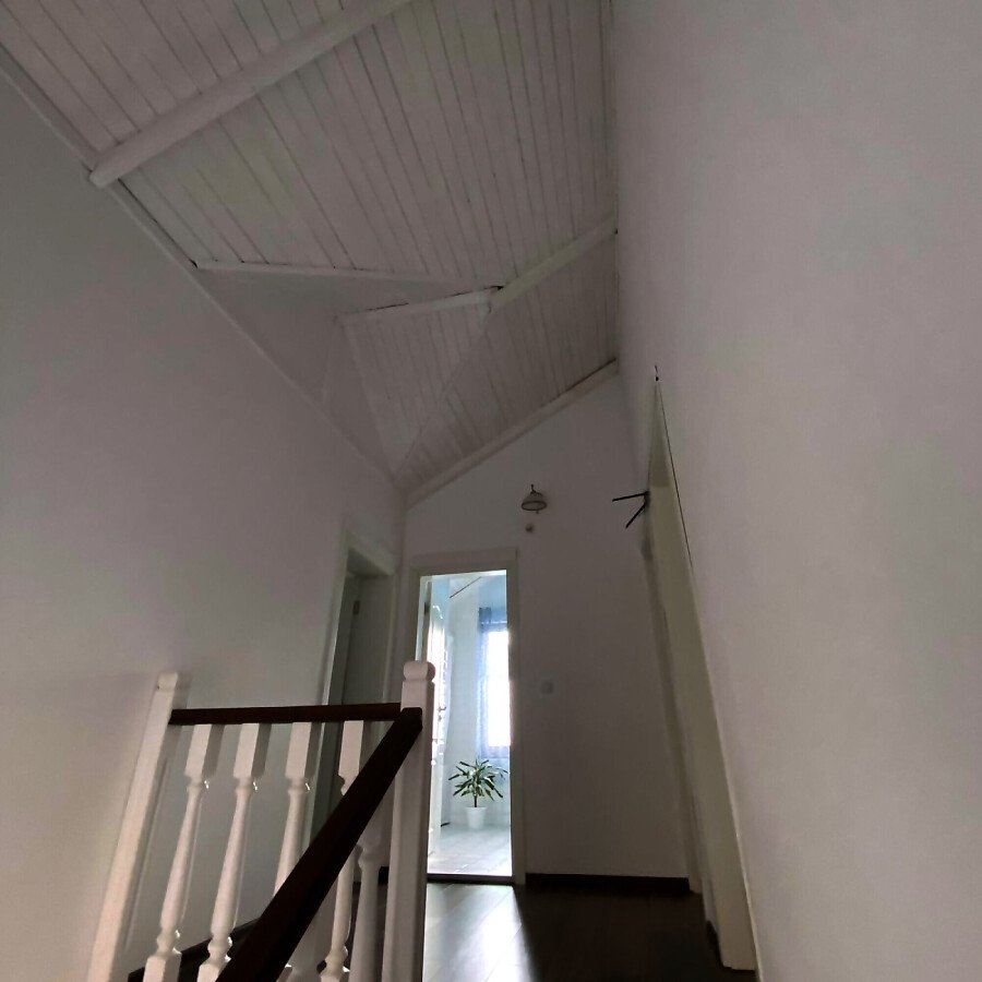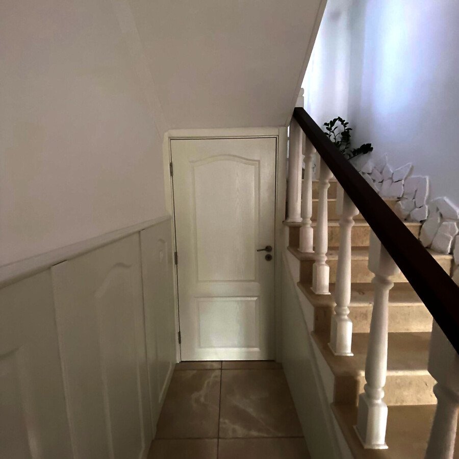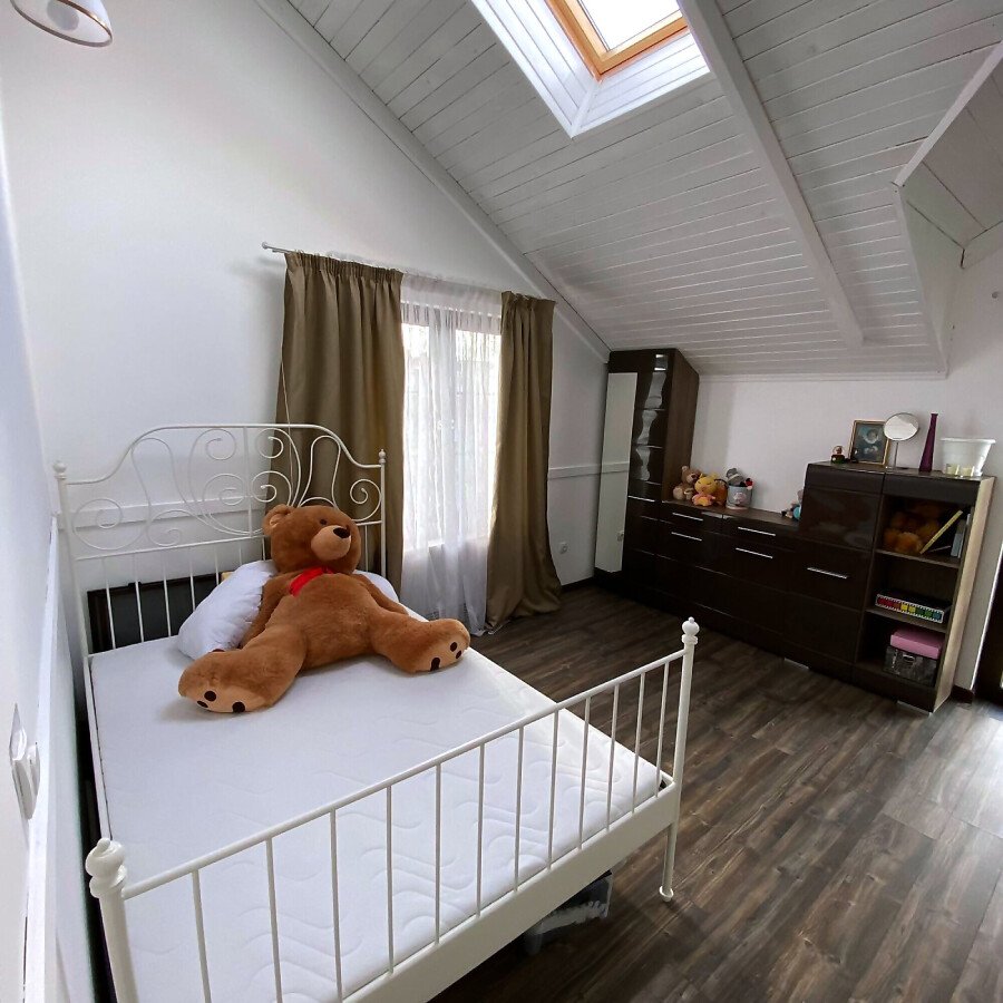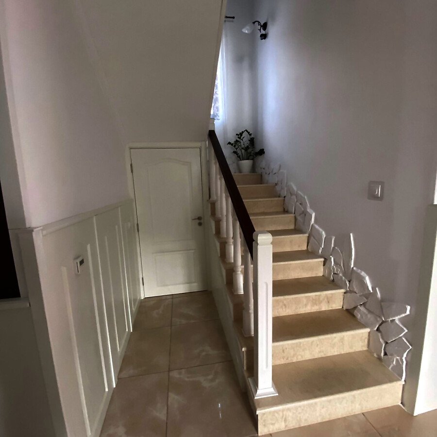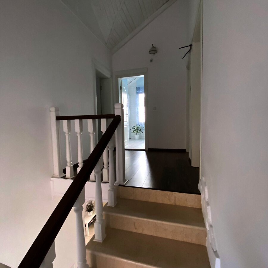 На втория етаж има коридор, три просторни спални, две от които със тераси, гардеробна и голяма баня с вана.