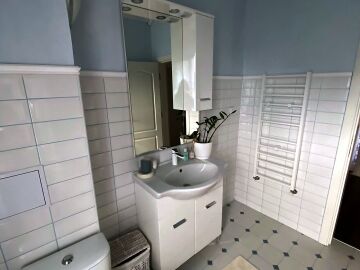 Всичките помещения на къщата се отопляват с термо - помпа (режим - отопление и охлаждане), на първия етаж има и подово отопление. Към къщата има поставени слънчеви колектори. Напълно обзаведена и оборудвана с всичко необходимо за нанасяне.
