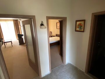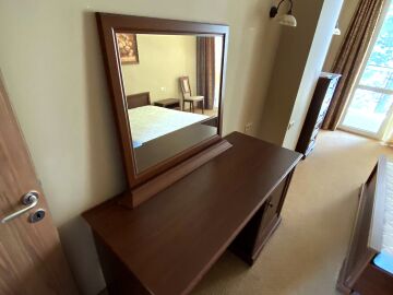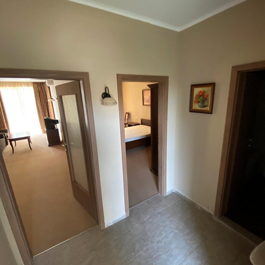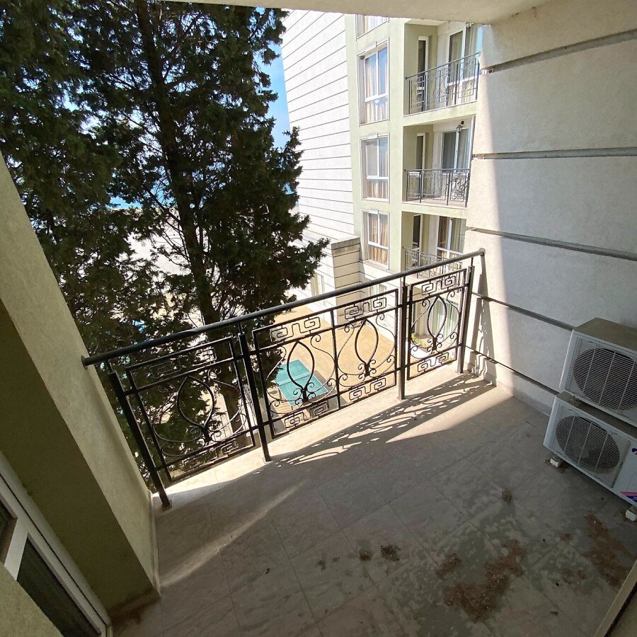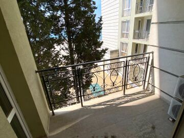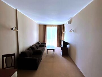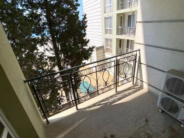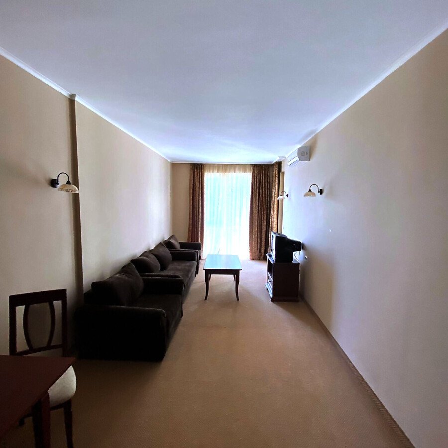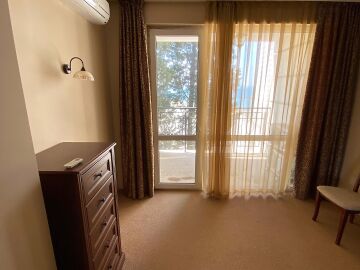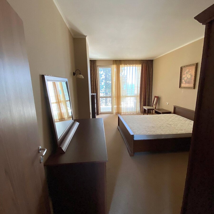 Апартамента е с изглед към морето и е разположено на 3-ти етаж. Напълно обзаведен и оборудван. Общата площ е 67 кв.м. Апартамента е напълно завършено и обзаведено „на ключ” с луксозни мебели. Разполага с напълно оборудван кухненски бокс, баня с тоалетна, спалня и тераса с гледка към плажа и морето и градината. Подходящо за целогодишно ползване.