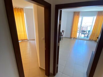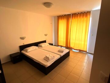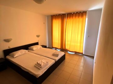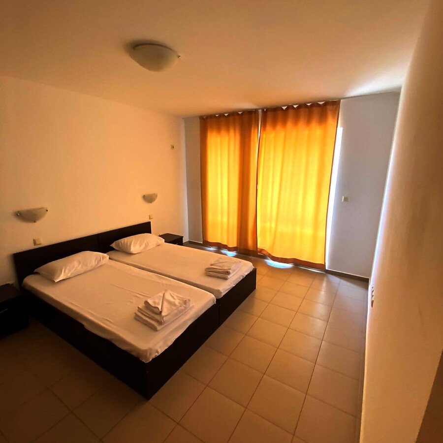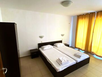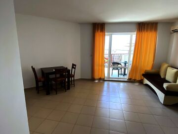 Състои се от входно антре, всекидневна с кухненски бокс, спалня, баня с тоалетна и тераса с гледка към градината и морето.