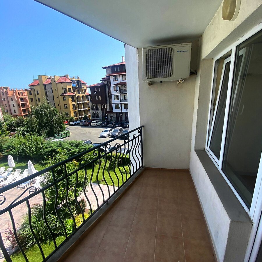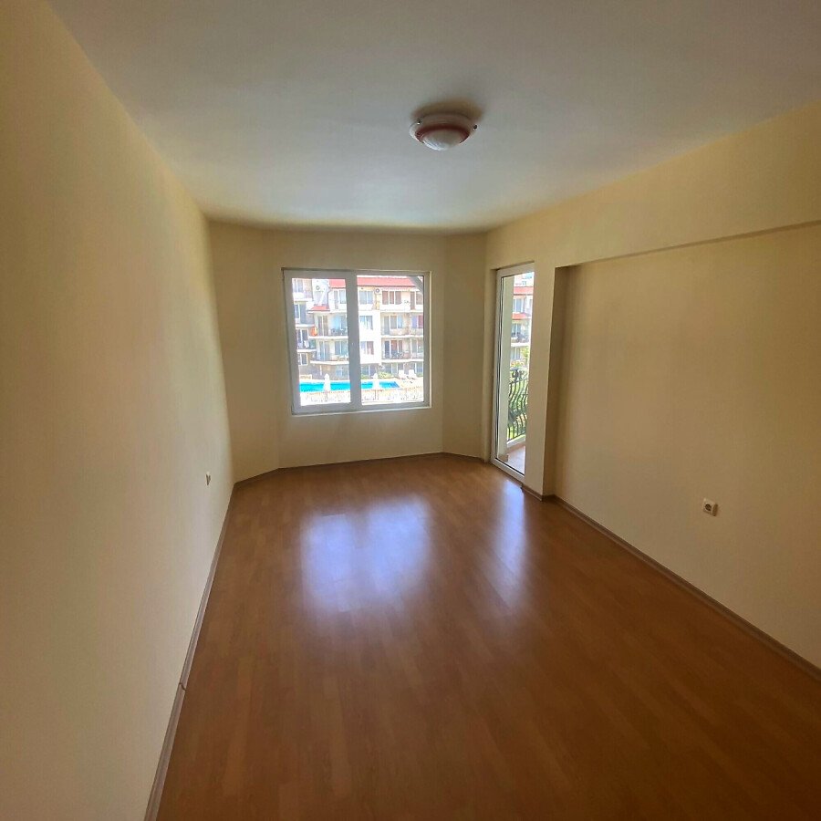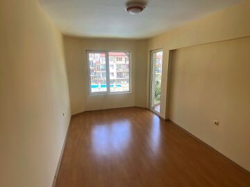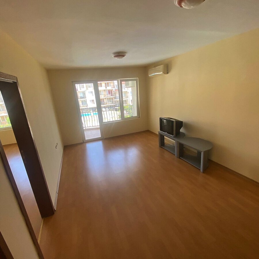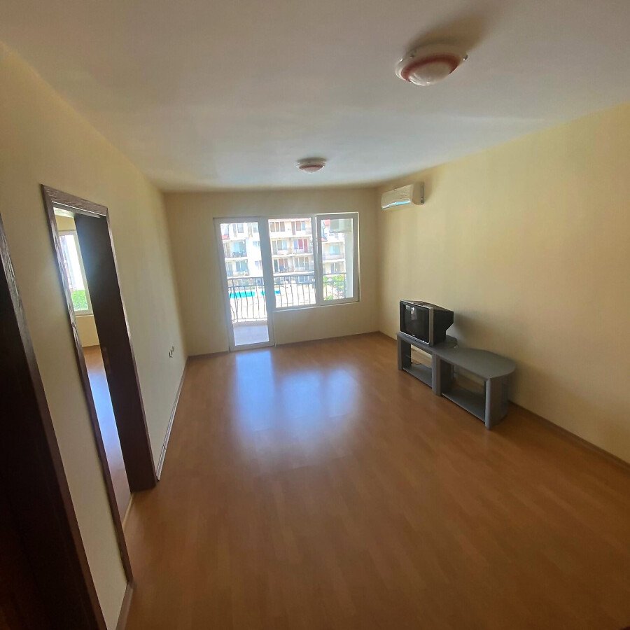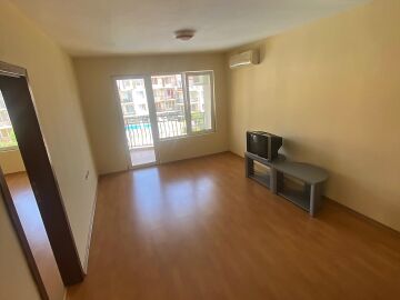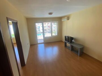 Апартамента е разположен на 4-ти етаж и се състои от дневна с кухненски бокс, спалня, баня и тераса с гледка към градината на комплекса и басейна.