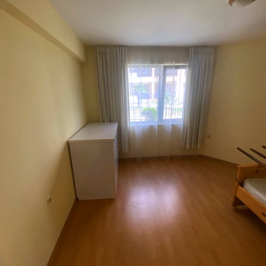 Апартамента е разположен на 2-ри етаж и се състои от дневна с кухненски бокс, две спални, баня и тераса с гледка към градината на комплекса.