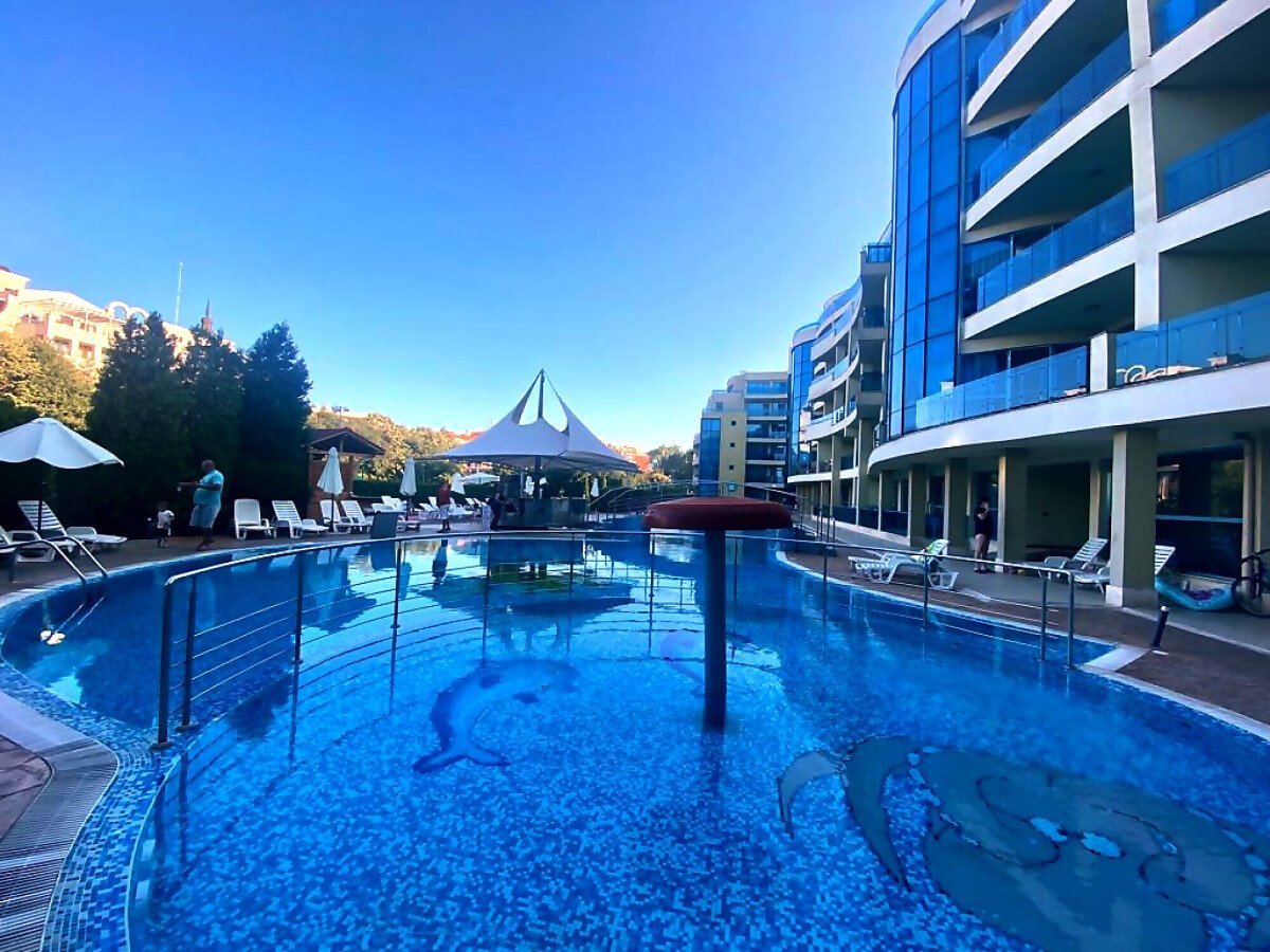 Комплекса е добре поддържан намиращ се само на 200м. от плажа в Поморие. Той разполага с просторна озеленена територия с ландшафтен дизайн, собствена инфраструктура на комплекса включва СПА център, два ресторанта, два коктейлни бара, открит басейн, конферентна зала, мини голф игрище и детска площадка.