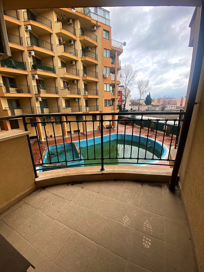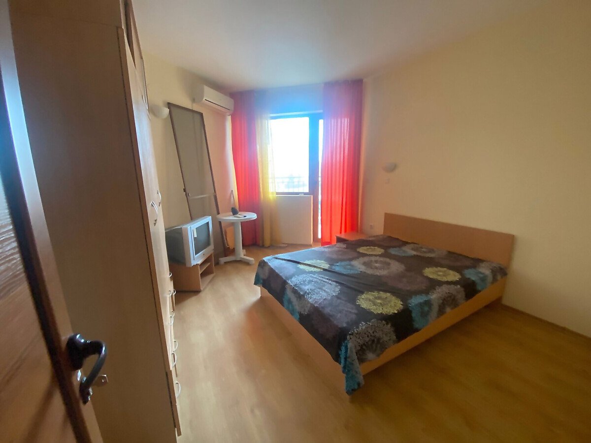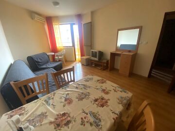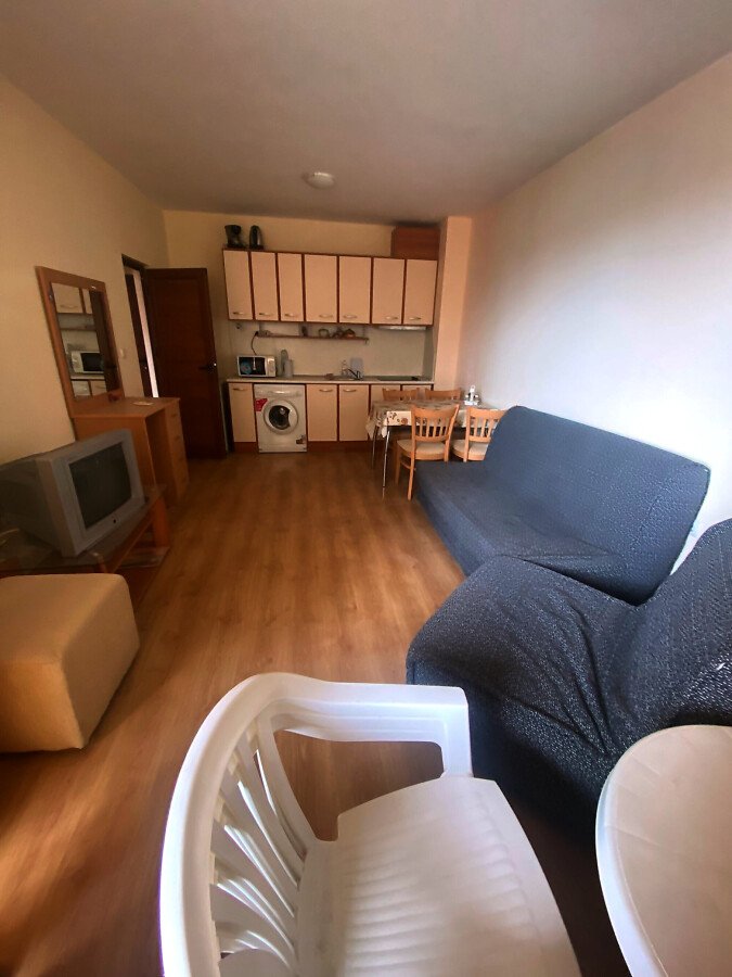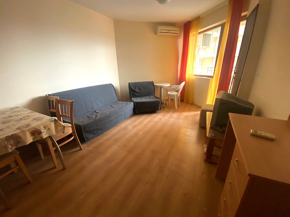 Предлагаме ви за продажба двустаен апартамент, разположен в жилищен комплекс в центъра на курорта Слънчев бряг. Комплексът се намира само на 10 мин. пеша от плажа. Разстоянието до стария град на Несебър е 7 км, а от най-близкото летище Бургас до комплекса е 30 км.