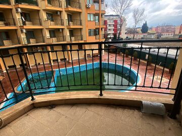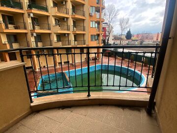 Апартаментът е напълно обзаведен, готов за нанасяне. Състои се от дневна с кухненски бокс, спалня, баня с тоалетна и две тераси с прекрасна гледка към басейна.