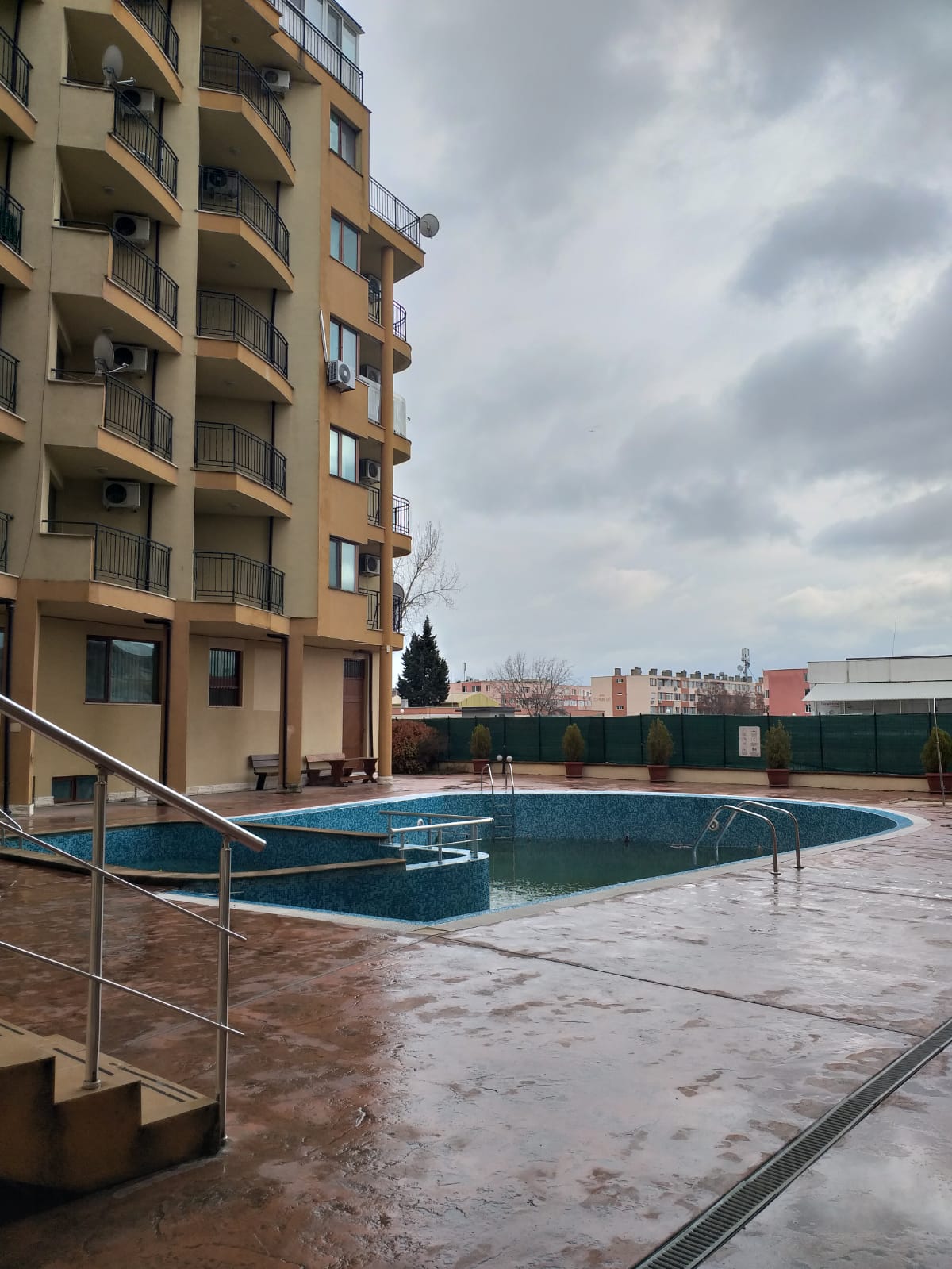 Комплексът разполага с басейн, паркинг, охрана и контролиран достъп.