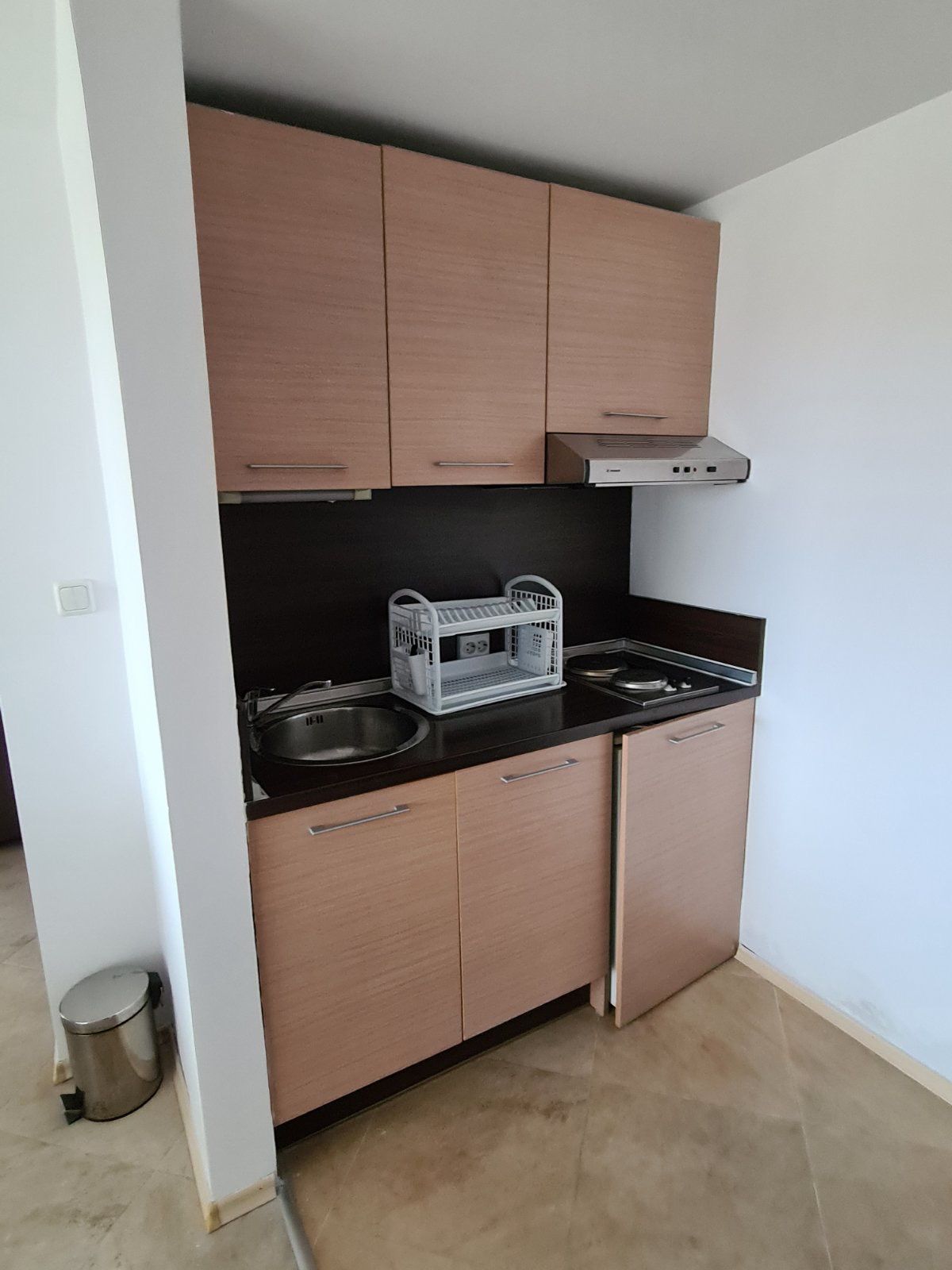 Апартаментът е напълно обзаведен и готов за нанасяне. Състои се от всекидневна с кухненски бокс, спалня, баня с тоалетна и тераса с прекрасна гледка към морето и басейна.