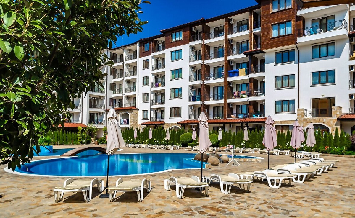 Комплексът е отлично поддържан, самостоятелно отделен с красиво оформени вътрешни пространства – озеленени живописни градини и разнообразна растителност, басейн за възрастни, детски басейн и детска площадка, зони за отдих, паркинг.