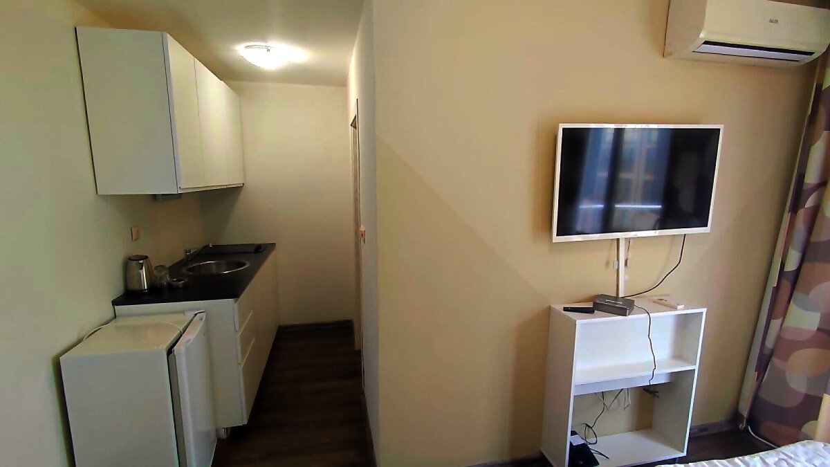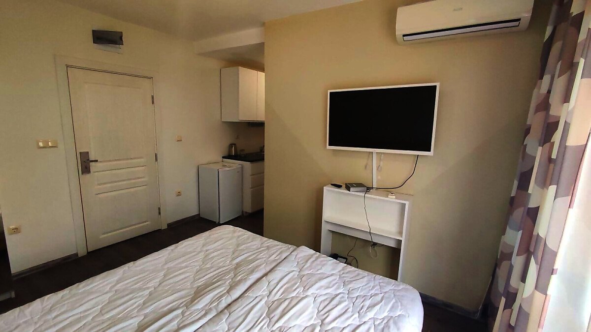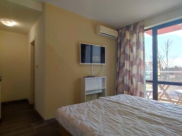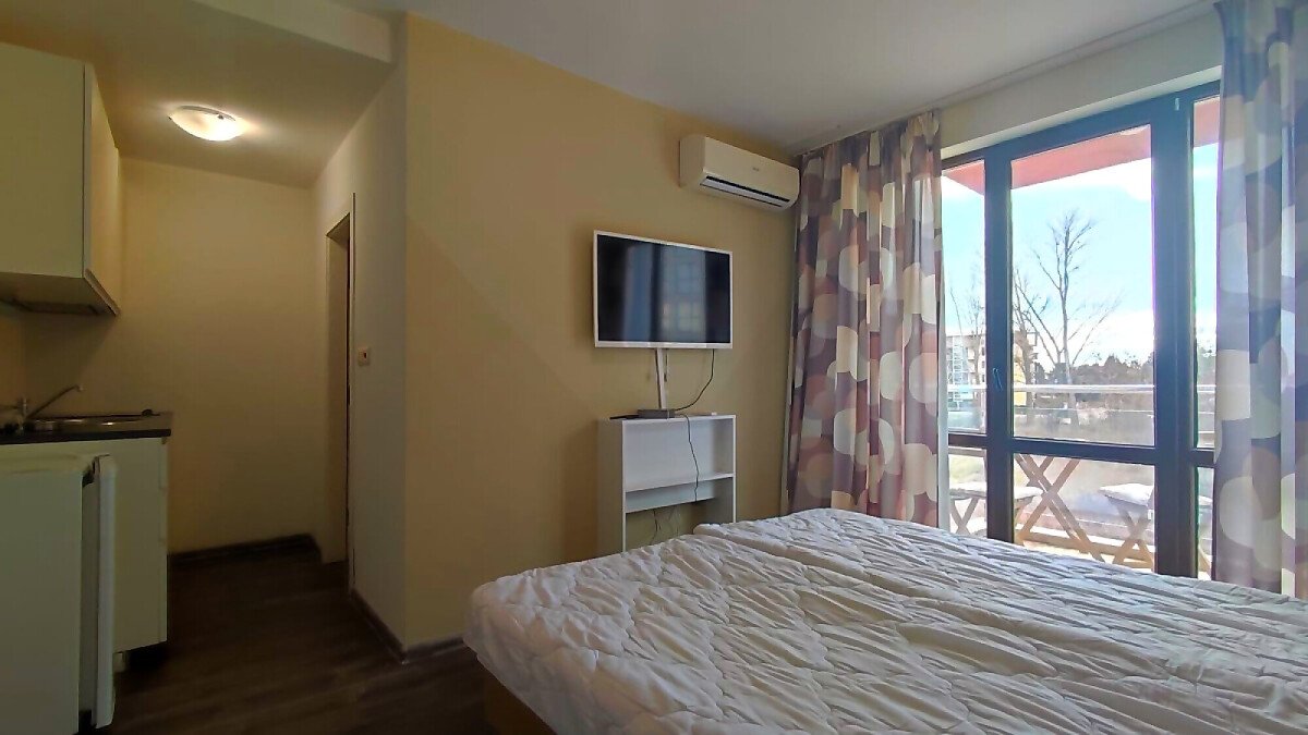 Студиото е в идеално състояние, напълно обзаведено, подходящо за целогодишно живеене или отдаване под наем. Състои се от всекидневна с кухненски бокс, баня с тоалетна и тераса.