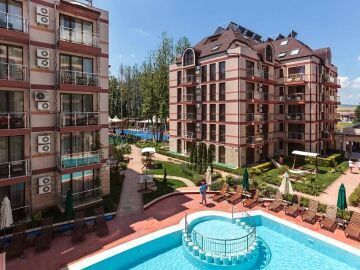 Предлагаме ви за продажба студио в луксозен комплекс, разположен в прекрасния курорт Слънчев бряг. Комплексът се намира в западната част, която е една от най-зелените и спокойни части на курорта, само на 500 метра от плажната ивица. В близост има хранителни магазини, ресторанти, удобни автобусни спирки.