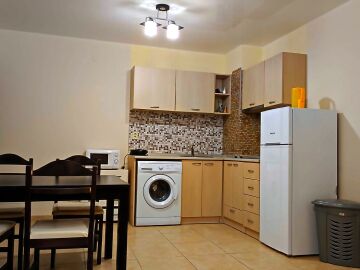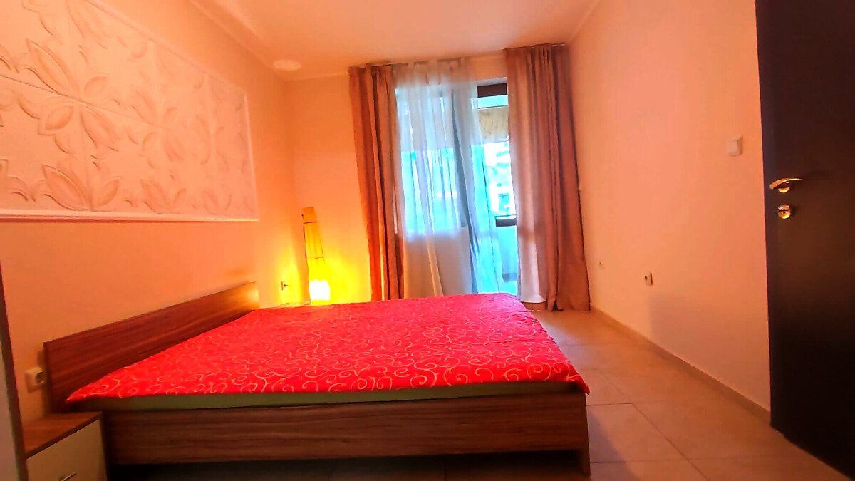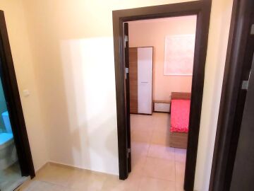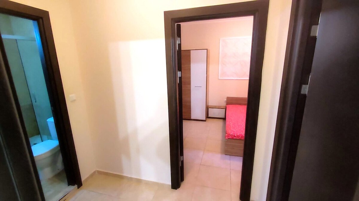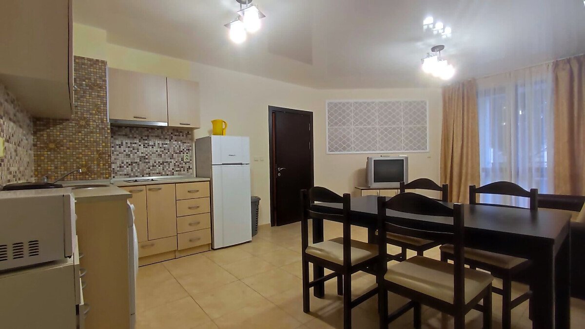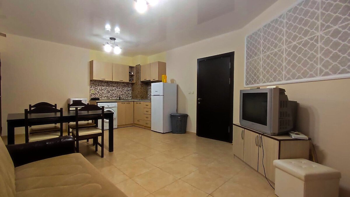 Апартаментът е със следното разпределение – коридор, всекидневна с кухненски бокс, две спални, две бани с тоалетни и две самостоятелно обособени тераси с гледка към басейна. Жилището е ремонтирано, напълно обзаведено и оборудвано с необходимите електроуреди за комфортен престой. Подходящо е за целогодишно ползване или сезонно отдаване под наем.