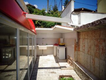 Дворът е ограден с масивна ограда и разполага с голяма зимна градина, лятна кухня, барбекю, малък басейн. Сред преимуществата на този имот е собствен гараж.