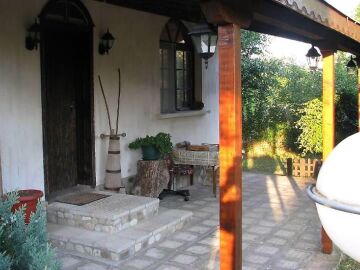Къщата е обзаведена, разполага с камина и подови настилки. Дворът е озеленен и аранжиран, с площ от 750 кв.м.