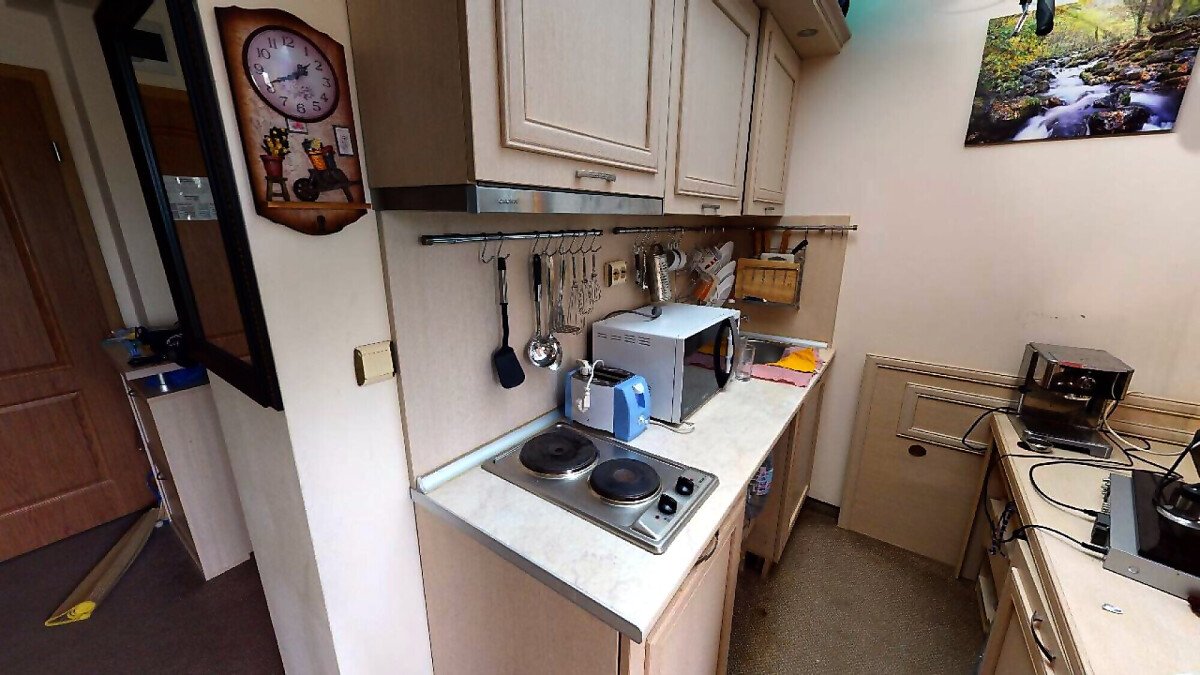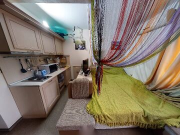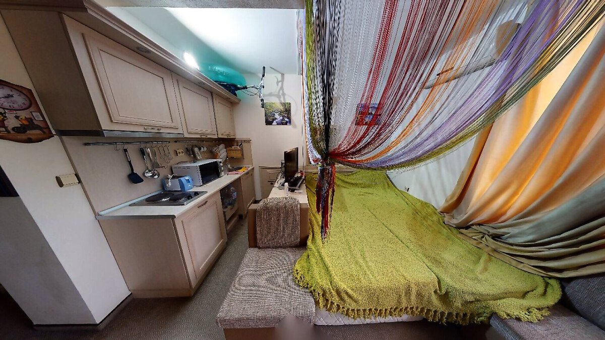 Апартаментът е разположен на шести, последен етаж и има следното разпределение – входно антре, всекидневна с напълно оборудван кухненски бокс, баня с тоалетна. Студиото е подходящо както за целогодишно ползване, така и за сезонно отдаване под наем.