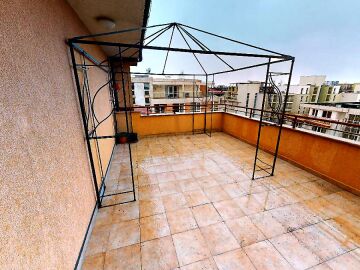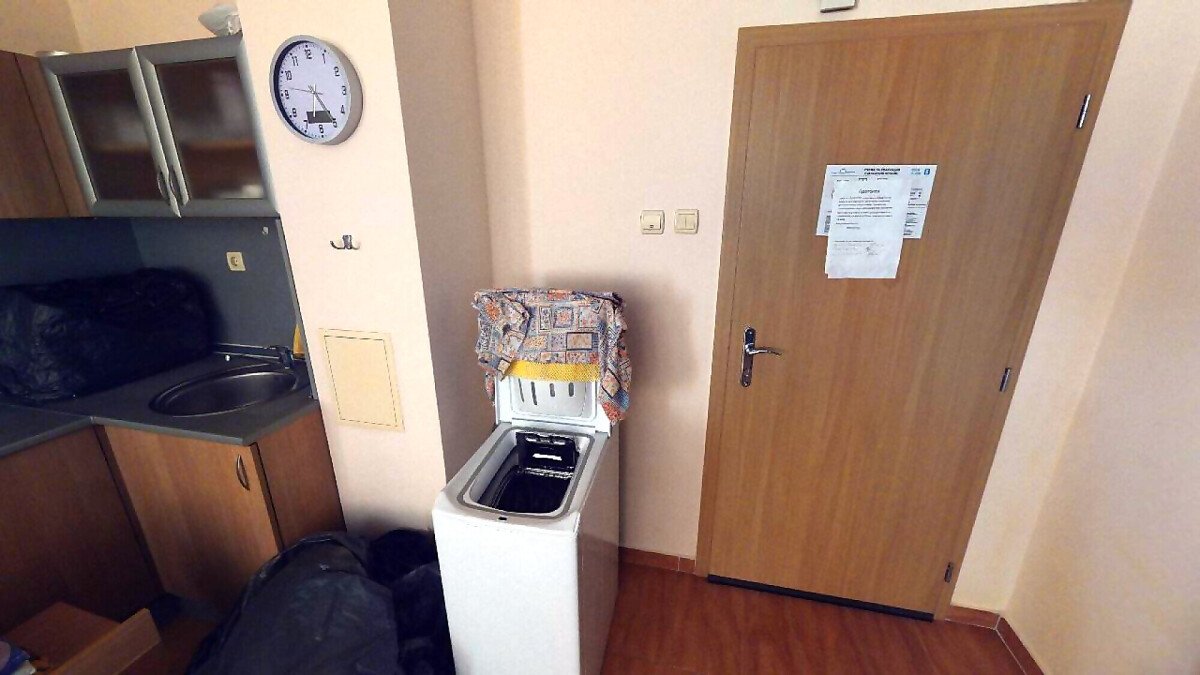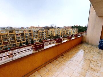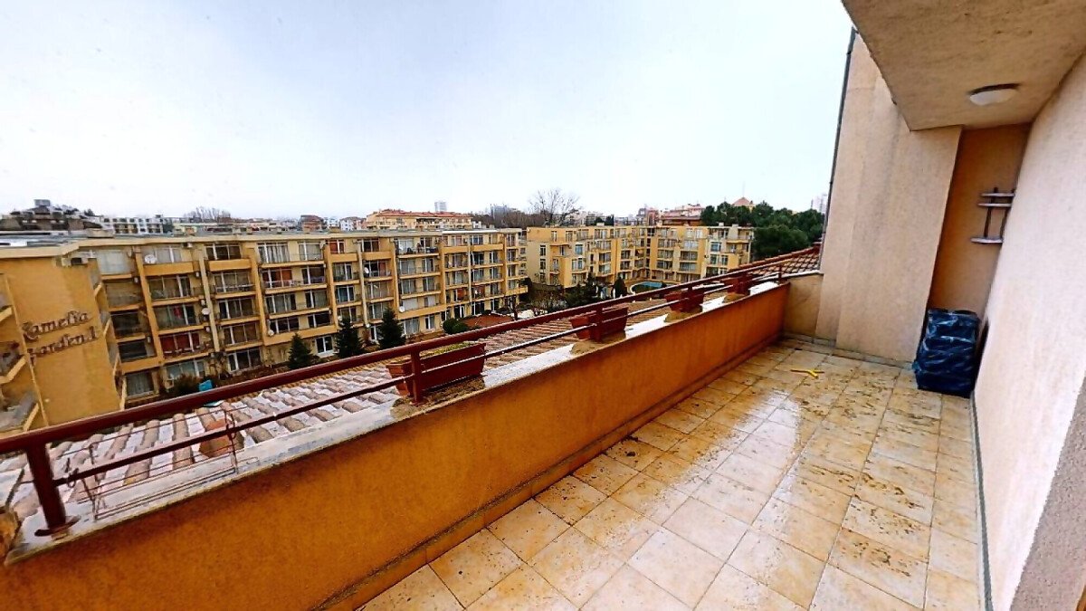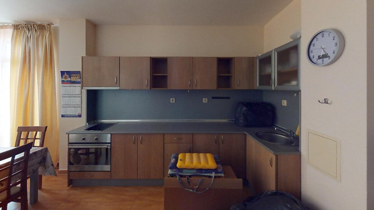 Апартаментът е разположен на последен етаж и има следното разпределение – просторна всекидневна с кухненски бокс, спалня, баня с тоалетна и две големи тераси. Продава се напълно обзаведен и оборудван с необходимите електроуреди за комфортен престой.