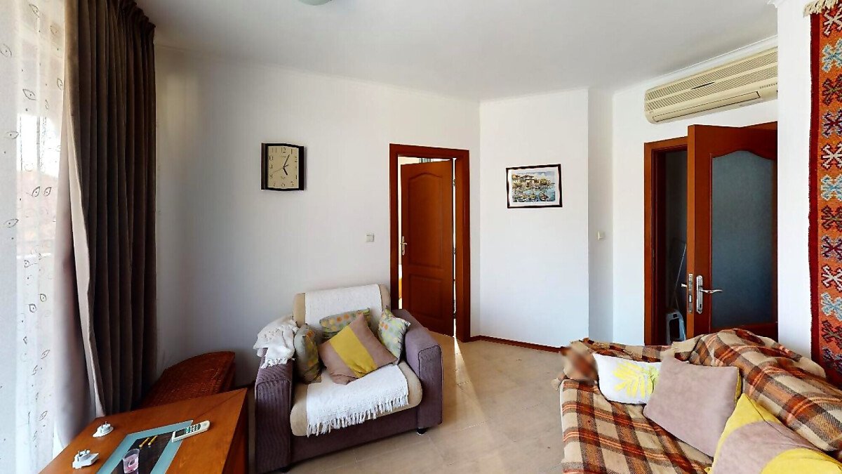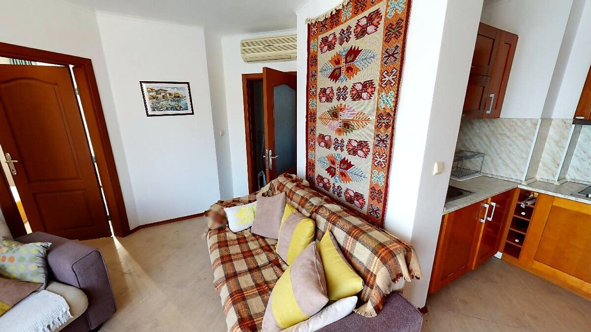 Апартаментът е разположен на трети етаж и се състои от входно антре, всекидневна с кухненски бокс, спалня, тоалетна, отделно баня с тоалетна и голяма тераса с чудесна гледка към морето. Жилището е напълно обзаведено и оборудвано с необходимите електроуреди за комфортен престой, готово за нанасяне.