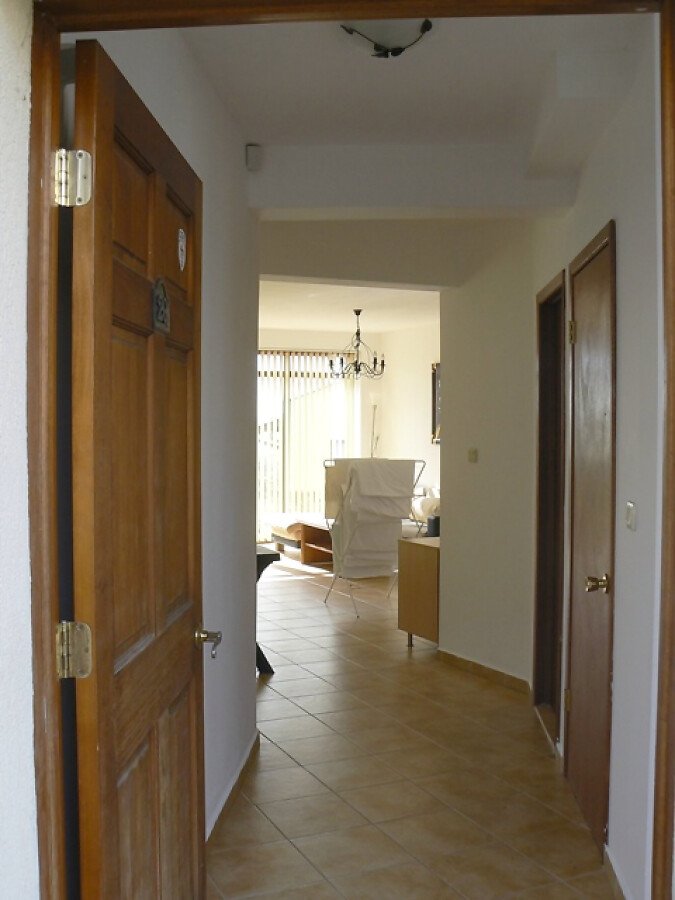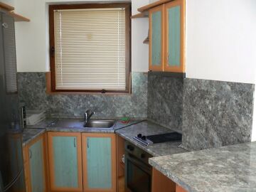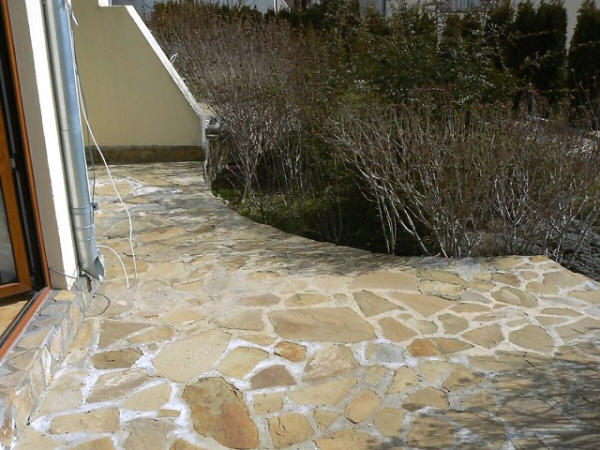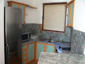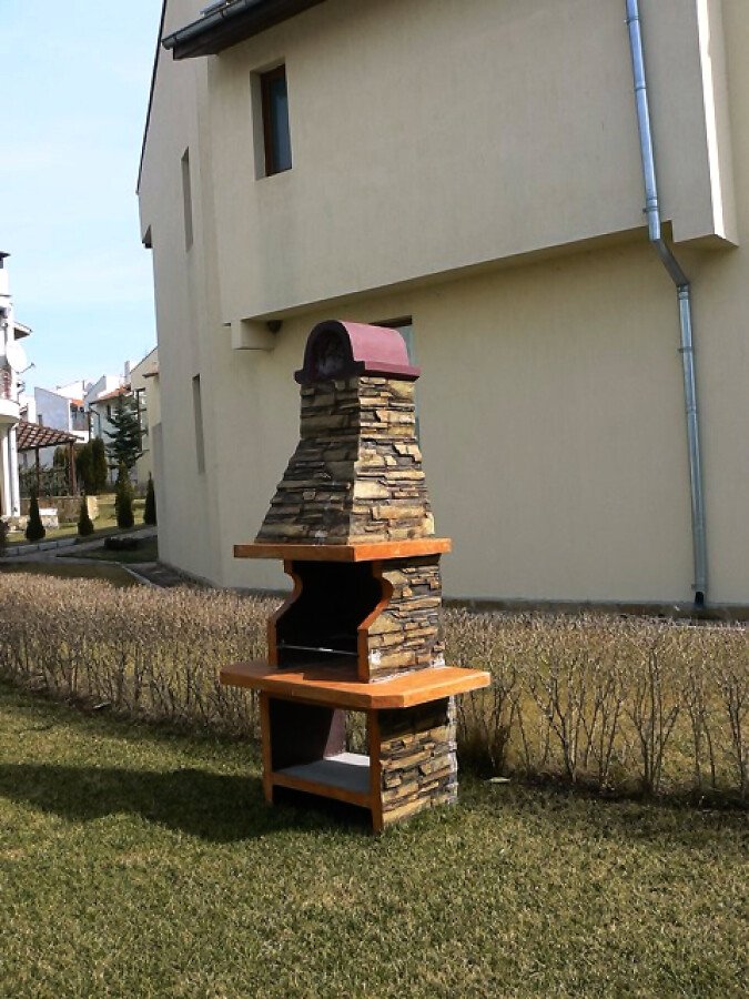 Къщата е просторна, на два етажа, с площ от 140 кв.м. и следното разпределение – входно антре, просторна всекидневна с напълно оборудван кухненски бокс, две спални, баня с голяма вана и отделно тоалетна, перално помещение и две тераси.