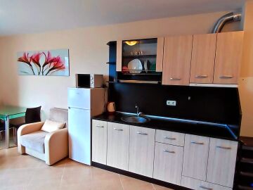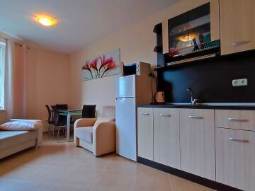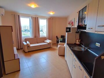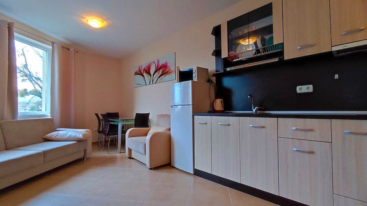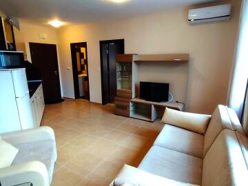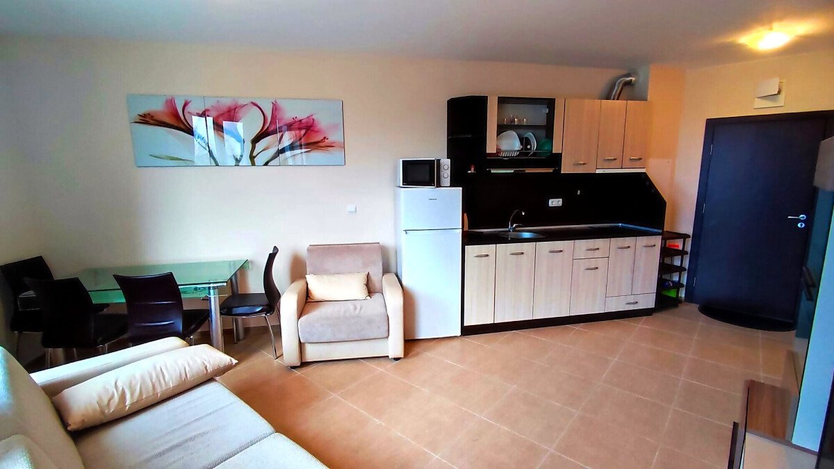 Предлагаме ви за продажба чудесен двустаен апартамент в комплекс, разположен в централната част на елитния курорт Слънчев бряг. Пясъчната плажна ивица се намира само на 5 минути пешеходно разстояние от комплекса. Районът е тих и спокоен, с много добра инфраструктура – в непосредствена близост има магазини, ресторанти, кафенета, аптеки, медицински център, банка, удобни автобусни спирки.