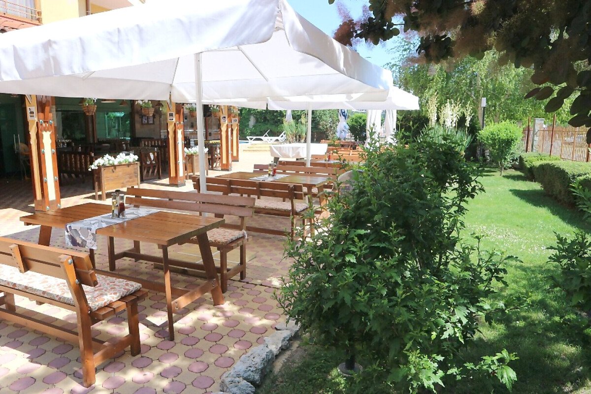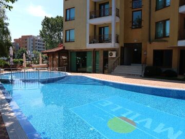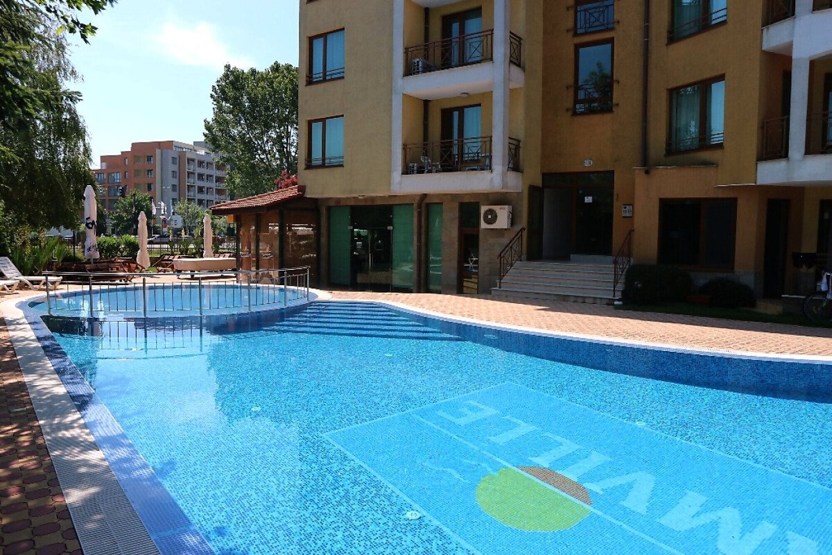 Комплексът е добре поддържан, разполага с красива озеленена градина, открит плувен басейн, малък магазин, ресторант, паркинг, охрана, контролиран достъп.