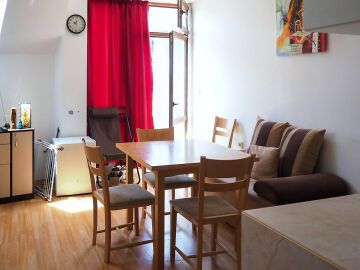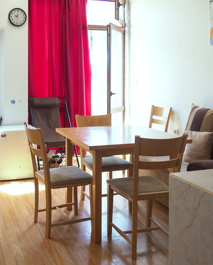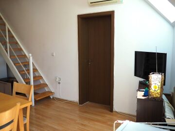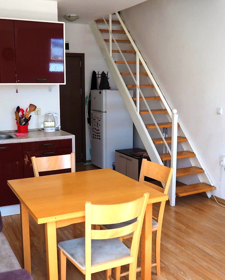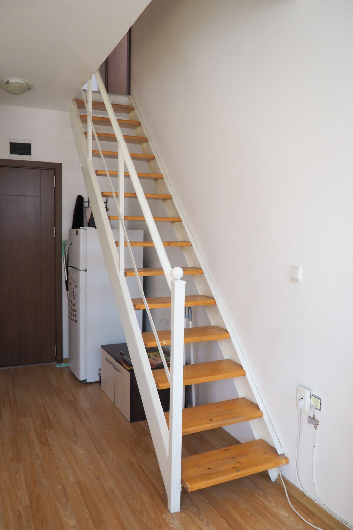 Имотът е напълно обзаведен и оборудван с необходимите електроуреди, готов за нанасяне. Разположен е на трети и четвърти етаж, с площ от 79 кв.м.