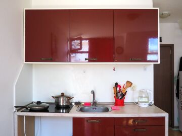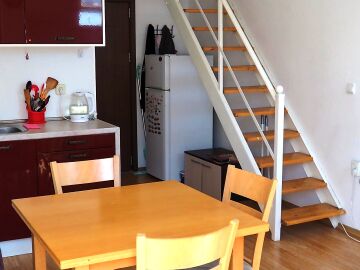 Първи етаж – малък коридор, голяма всекидневна с кухня, тоалетна и тераса;