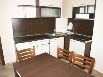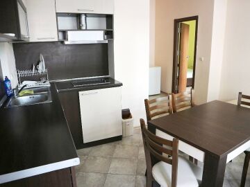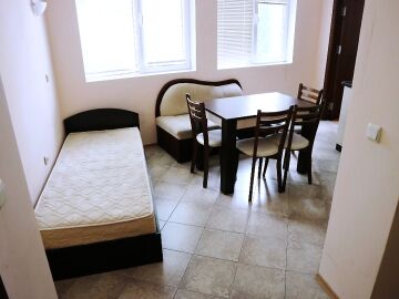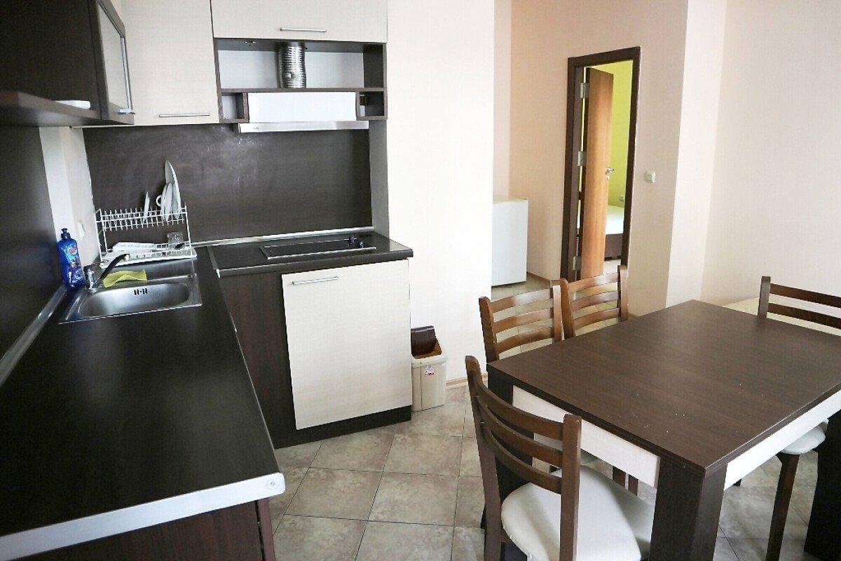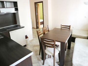 Апартаментът е функционален, с площ от 73 кв.м. и следното разпределение – всекидневна с кухненски бокс, две спални, баня с тоалетна и тераса. Жилището има изглед към двора и е готово за целогодишно ползване или сезонно отдаване под наем.