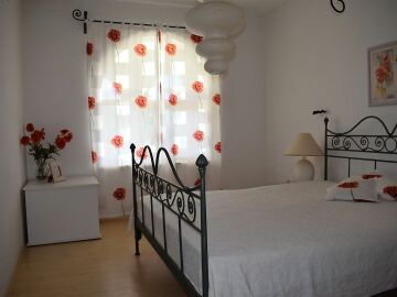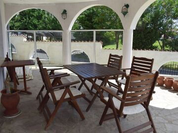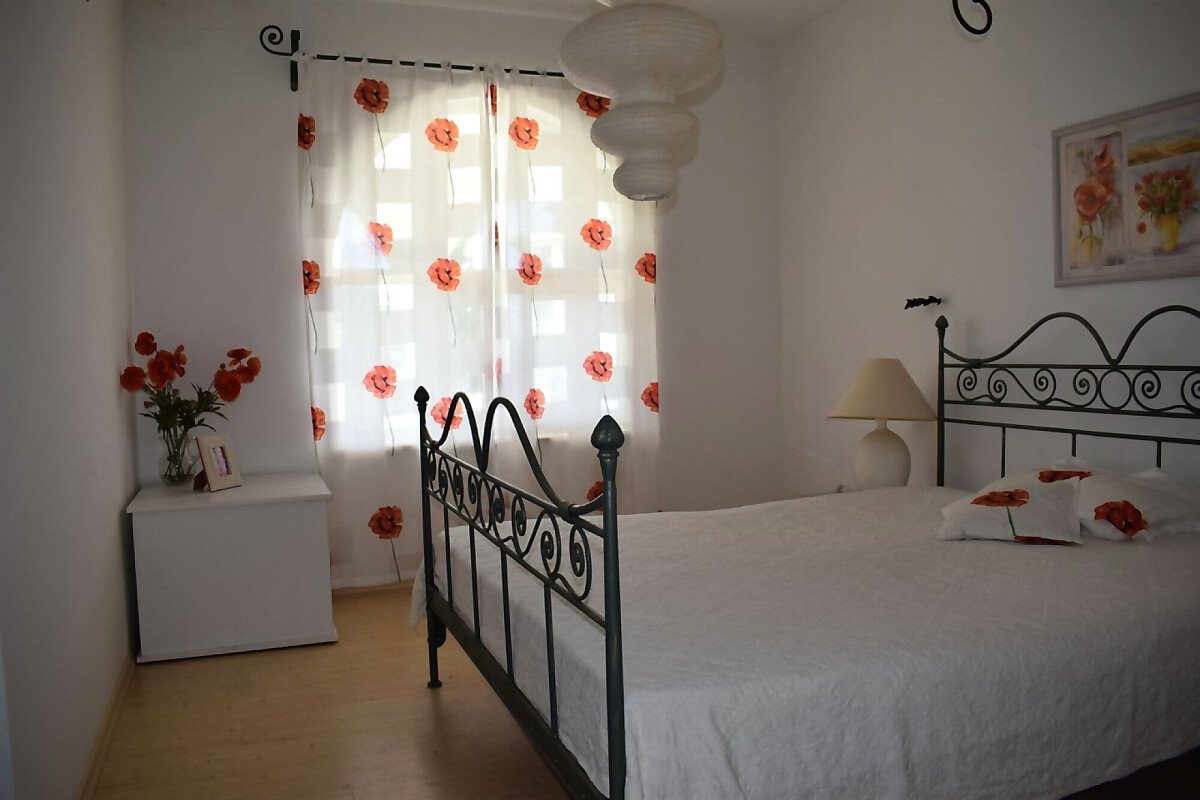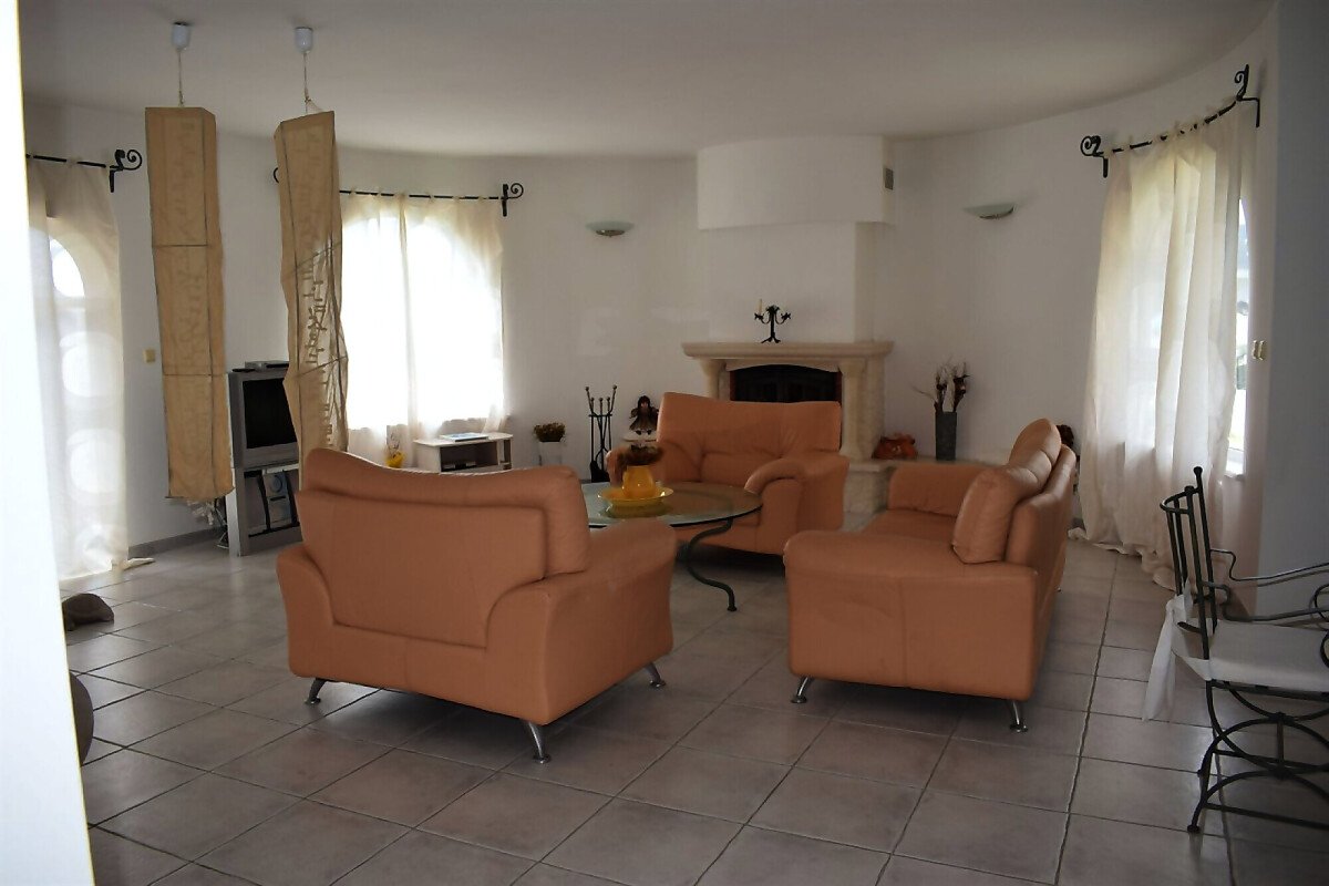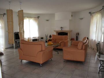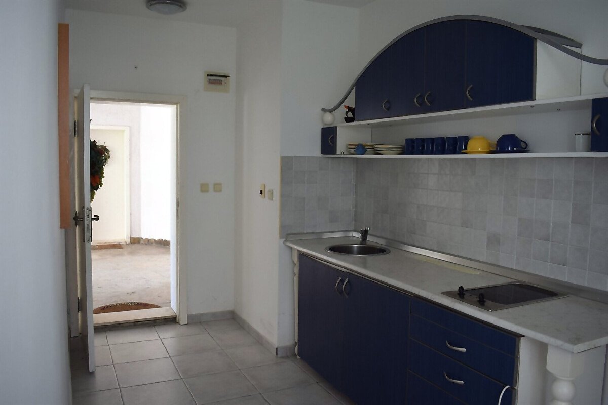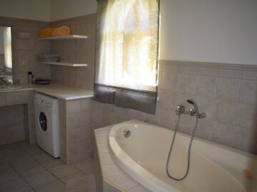 Вилата има покрита овална веранда с прекрасен изглед към морето. От нея има излаз към голям озеленен двор – 1 200 кв.м. и басейн с площ от 64 кв.м. Състои се от входно антре, стилно обзаведена и просторна всекидневна с камина и напълно оборудван кухненски бокс с трапезария, две спални с вградени гардероби от ковано желязо, голяма баня с тоалетна с душ кабина и вана, отделна тоалетна за гости. Всичките помещения са с подове от камък.