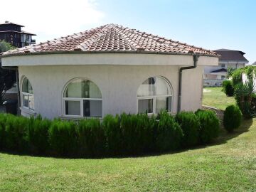 Предлагаме ви за продажба невероятна едноетажна вила с артистичен дизайн, разположена в елитния курорт Свети Влас, в непосредствена близост до плажа и морето, само на 150 метра разстояние. Към нея има и прилежаща къща за гости.