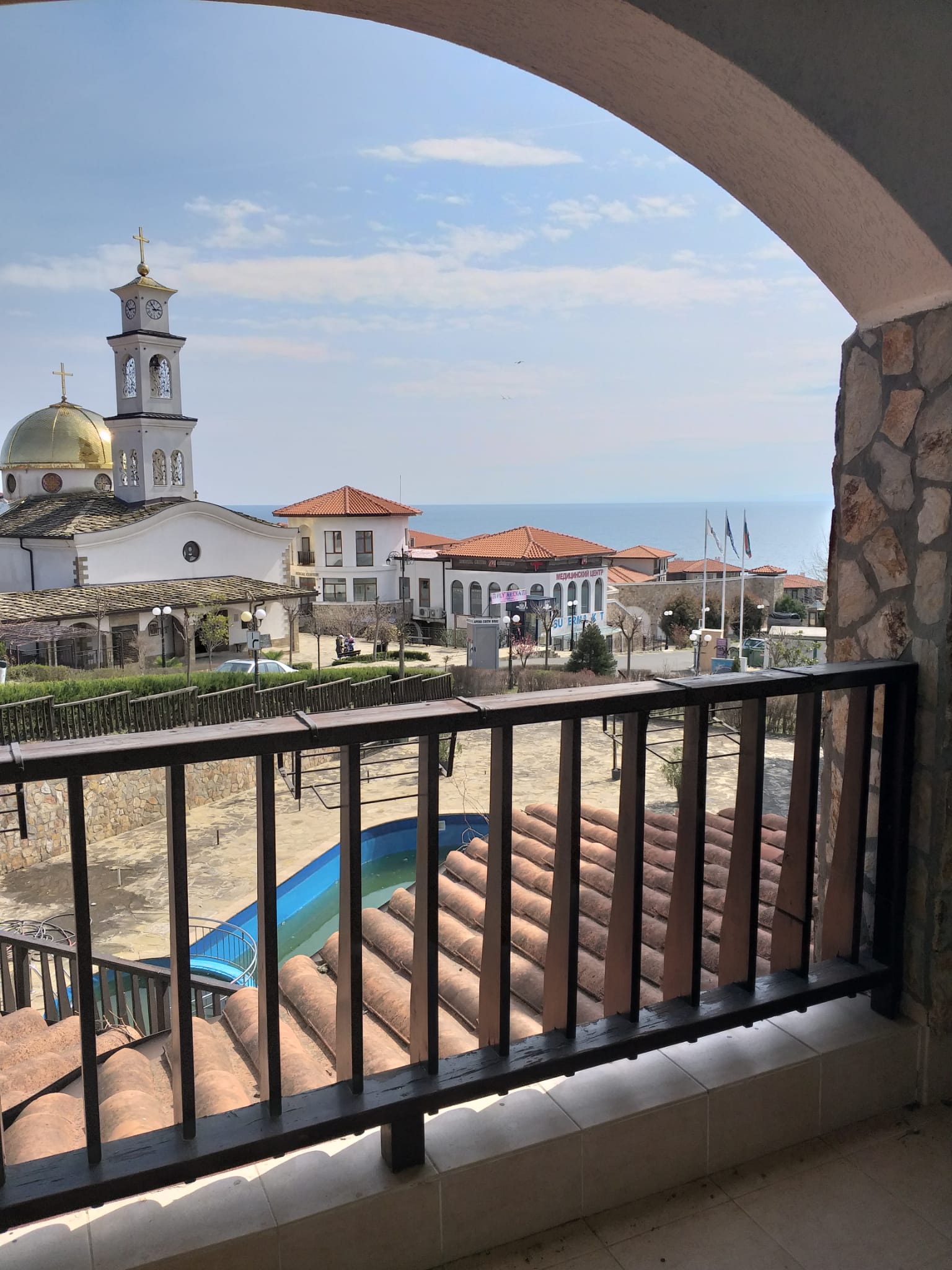 Близо до яхтеното пристанище, сред поддържани зелени площи е построена красива православна църква.