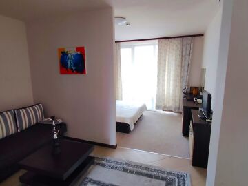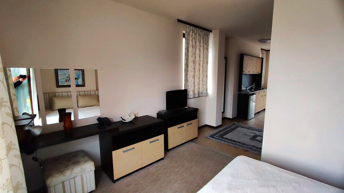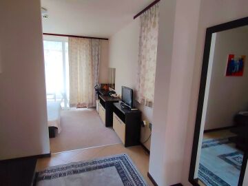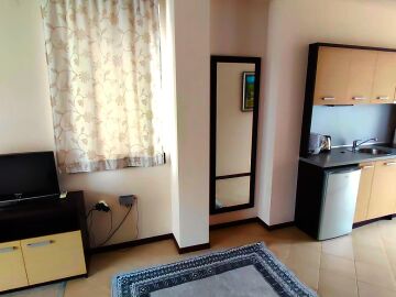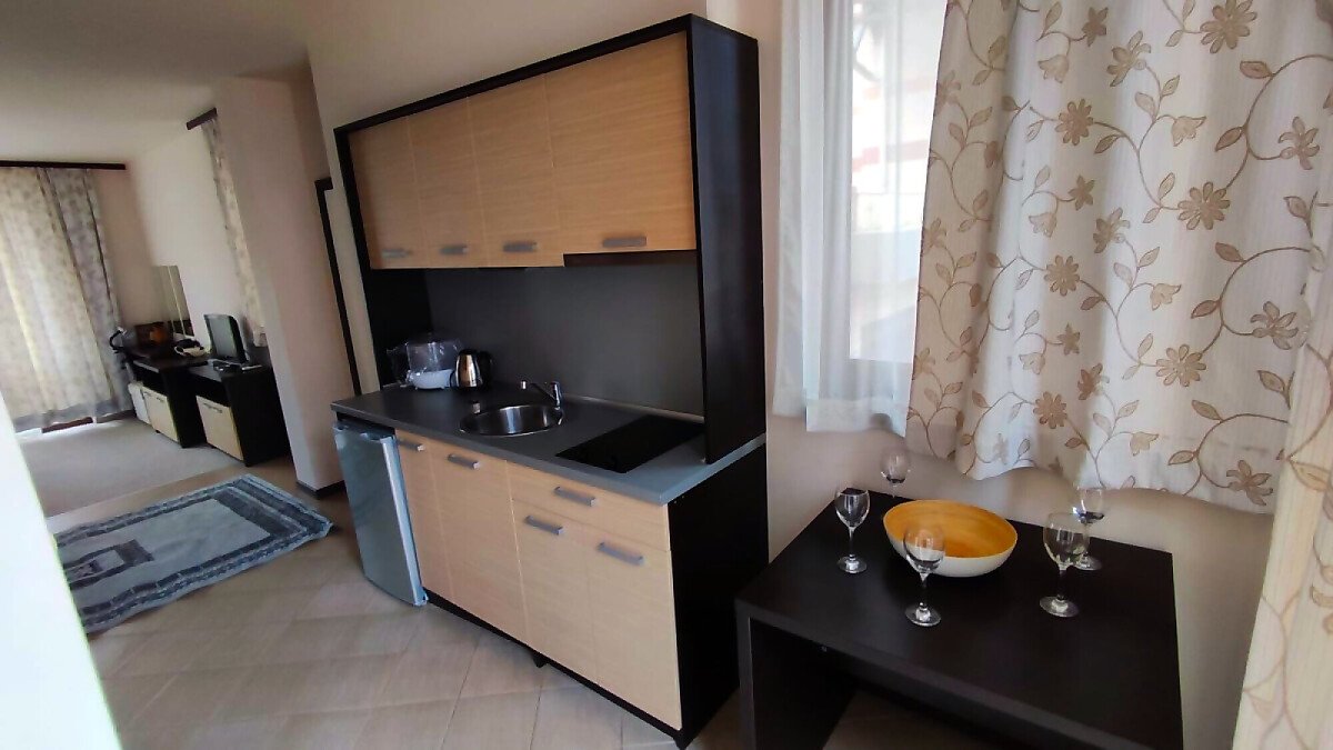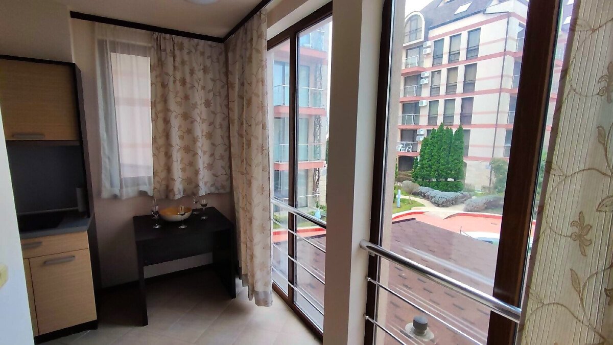 Предлагаме ви за продажба двустаен апартамент в прекрасен комплекс, разположен в най-модерния курорт на българското крайбрежие – Слънчев бряг. Само на 500 метра разстояние се намира пясъчната плажна ивица. Комплексът се намира в западната част на курорта, която е една от най-спокойните и зелени части.