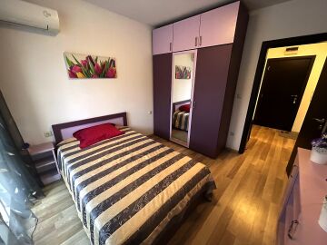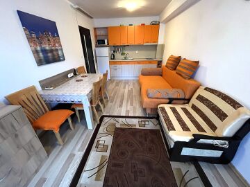 Апартаментът е много функционален. Състои се от просторно входно антре, всекидневна с кухненски бокс, спалня, баня с душ кабина и тоалетна и тераса. Жилището е в идеално състояние, напълно обзаведено и оборудвано с необходимите електроуреди, готово за нанасяне.