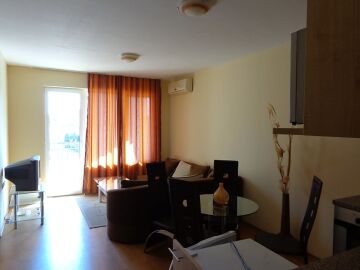 Предлагаме ви за продажба уютен двустаен апартамент в комплекс, разположен в югозападната част на елитния морски курорт Свети Влас. Само на 150 метра разстояние се намира чистият пясъчен плаж, а на 200 метра – известното яхтено пристанище ''Марина Диневи''. Там може да се насладите на луксозни ресторанти, плажни барове, дискотеки и кафенета.