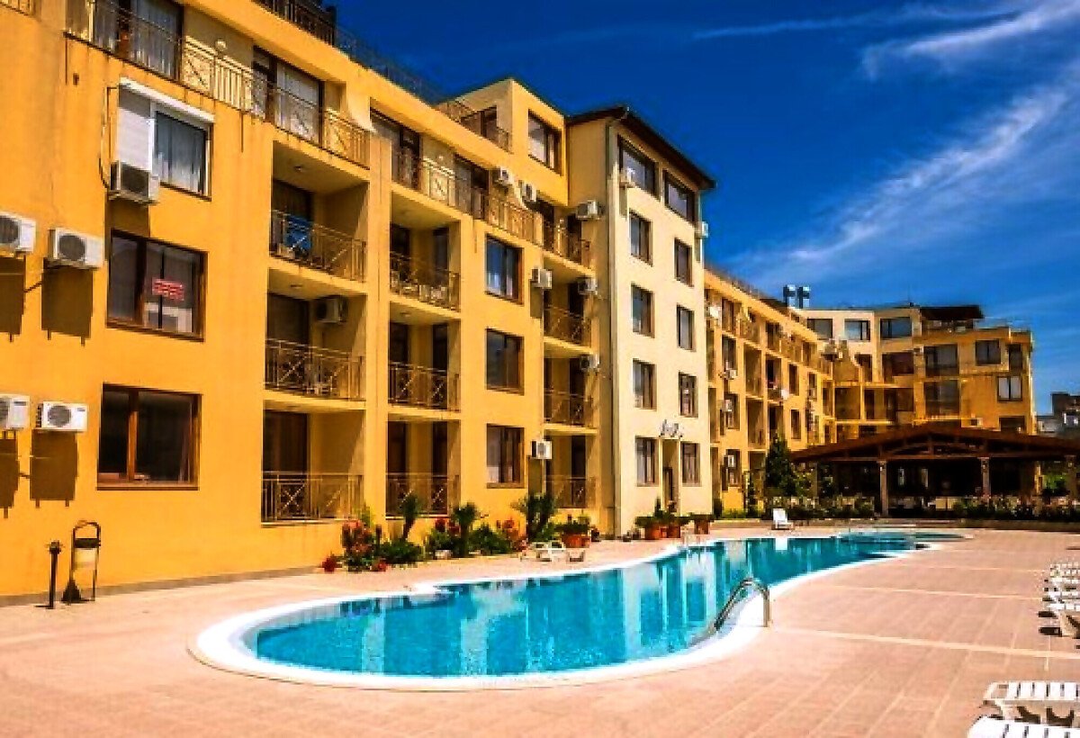 Предлагаме ви за продажба светъл двустаен апартамент в комплекс, разположен в елитния курорт Свети Влас. Само на 200 метра разстояние се намира прекрасната плажна ивица, а на 1 км от комплекса – яхтеното пристанище ''Марина Диневи''. Там може да се насладите на многобройни забавления като плажни барове, кафенета, луксозни ресторанти и клубове.