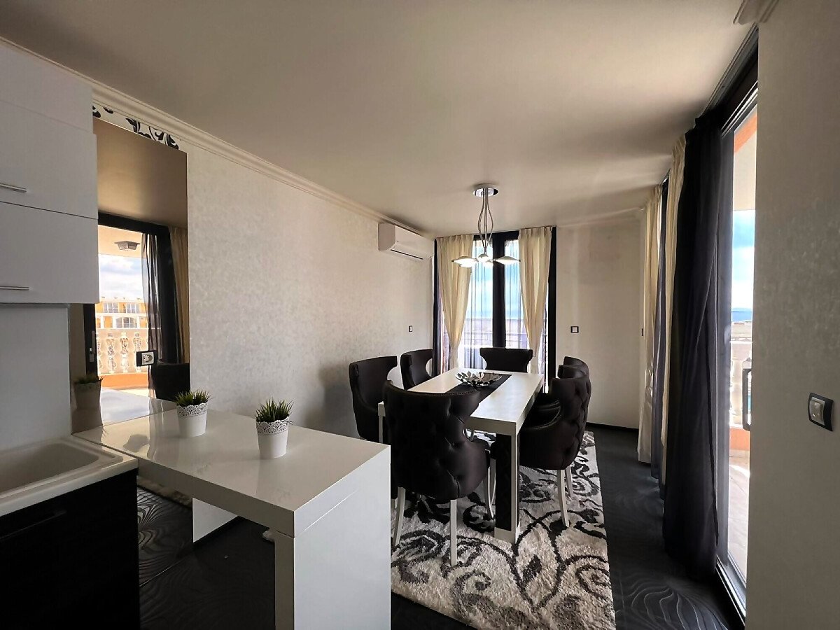 Предлагаме ви за продажба невероятен апартамент в луксозен комплекс, разположен в елитния курорт Свети Влас. Пясъчната плажна ивица се намира само на 200 метра от комплекса. На 5 минути пешеходно разстояние е центърът на курорта, където може да откриете разнообразни магазини и летни атракции.