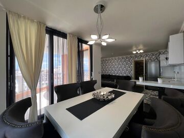 Апартаментът е стилно обзаведен, просторен и много функционален. Състои се от входно антре, всекидневна с кухненски бокс и кът за хранене, спалня, баня с тоалетна и тераса с красива панорамна гледка към морето.
