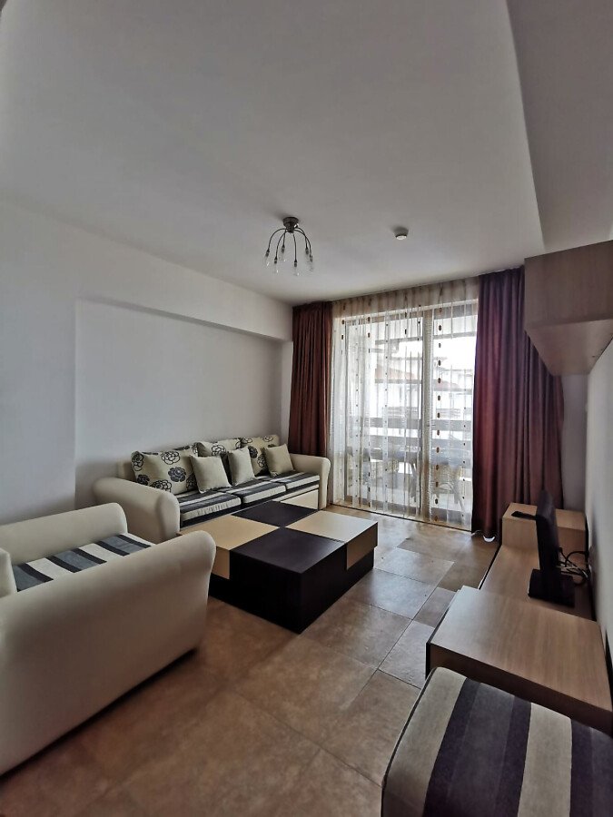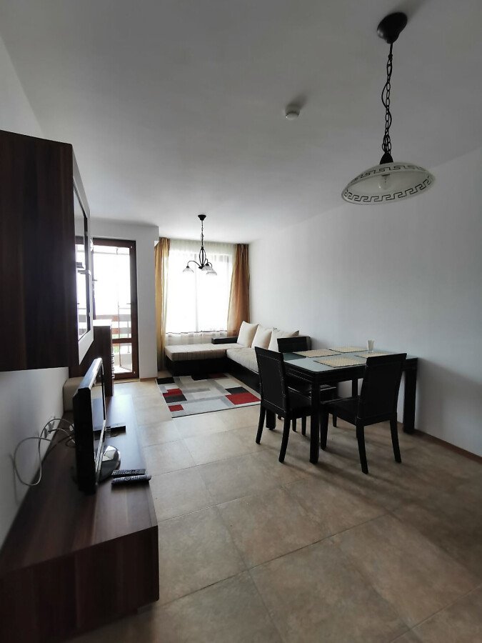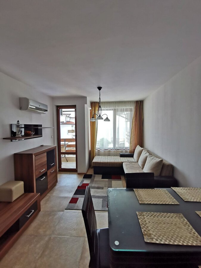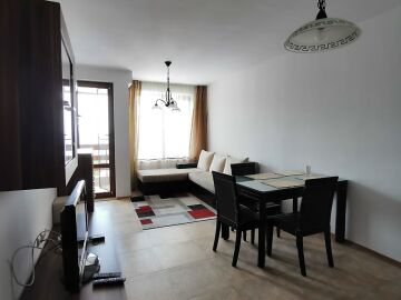 Апартаментът е много функционален. Състои се от входно антре, голяма всекидневна с кухненски бокс и кът за хранене, две спални, две бани с тоалетни и две тераси. Едната от терасите разкрива уникална панорамна гледка към морето и басейна. Имотът се продава напълно обзаведен и оборудван с всички необходими електроуреди, в отлично състояние.