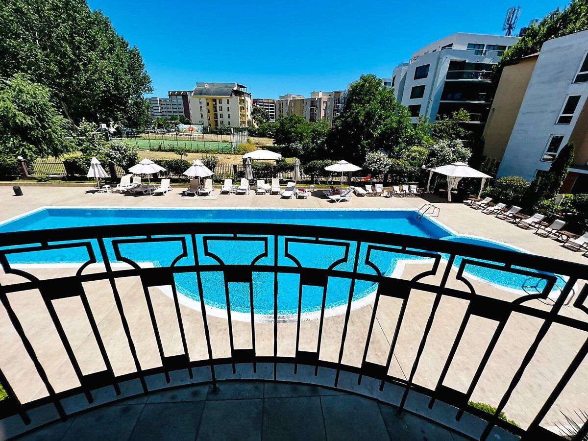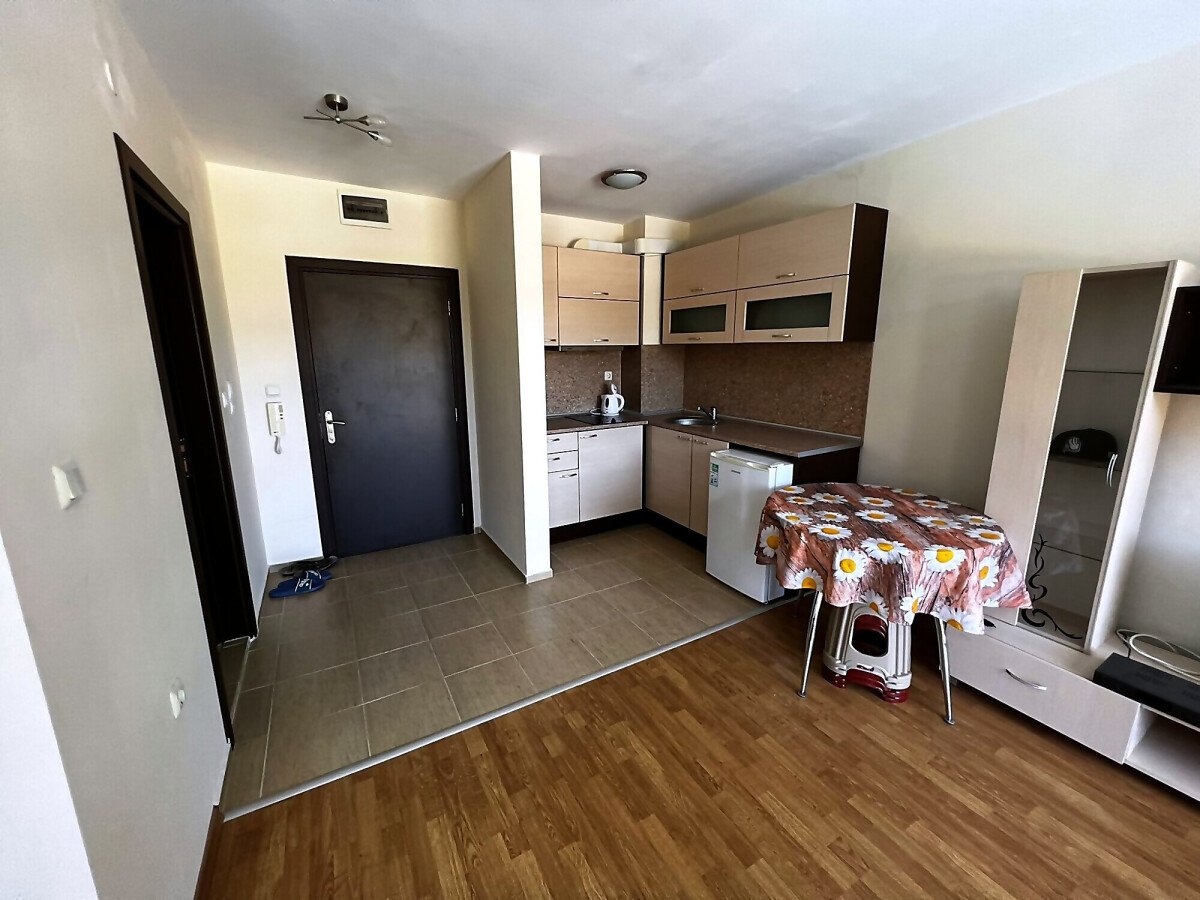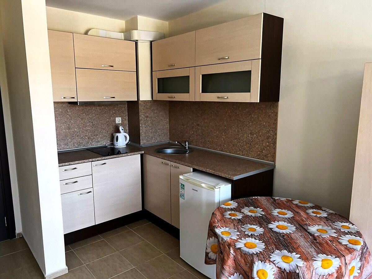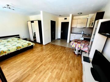 Прекрасно и светло студио, на 500м от красивите плажове на най–известния българския курорт Слънчев Бряг. Студиото е разположено на втори етаж и е с площ от 52кв.м. То е напълно обзаведено и оборудвано. Има чудесна и голяма тераса, с гледка към басейна. Комплексът е добре поддържан,озеленен и има прекрасен басейн с детски кът. Това студио има възможност да бъде преработено в двустаен апартамент. Студиото е подходящо за отдаване под наем. В сградата може да се живее целогодишно или сезонно.