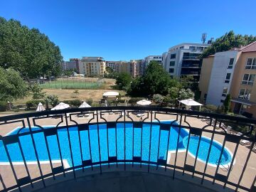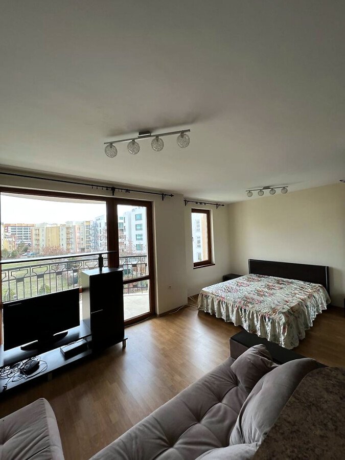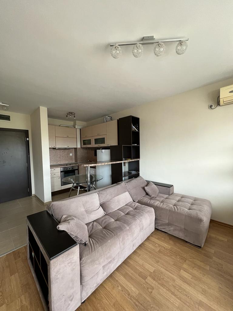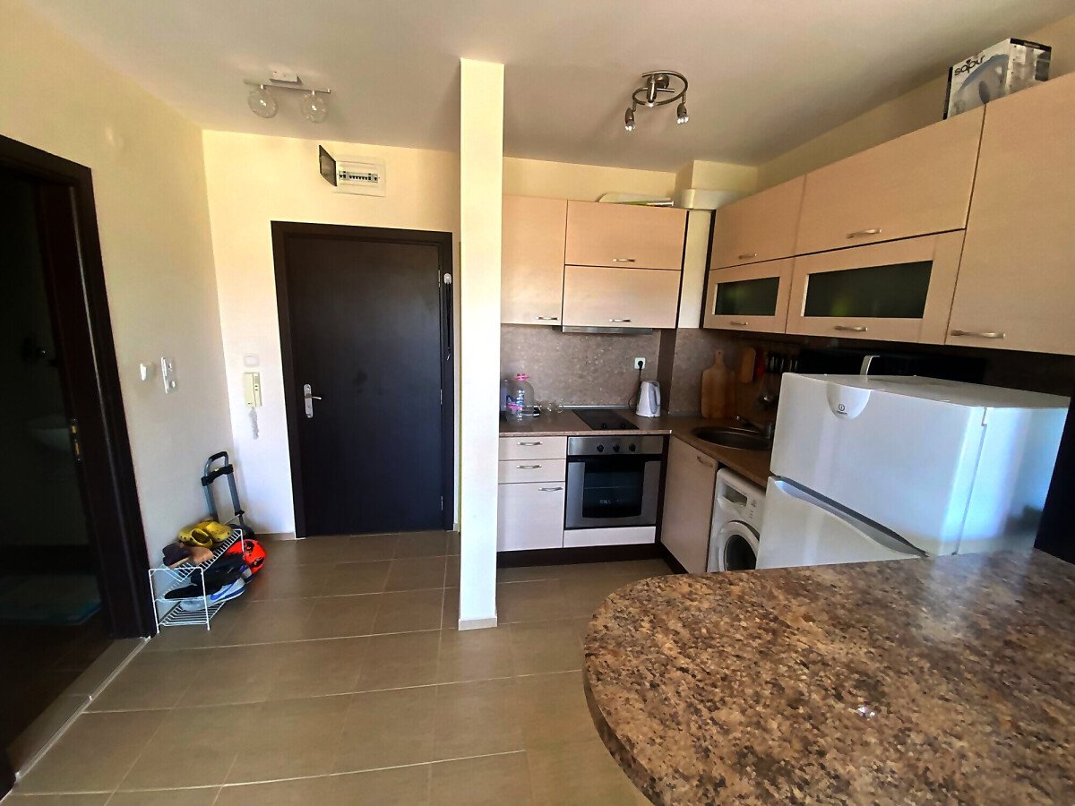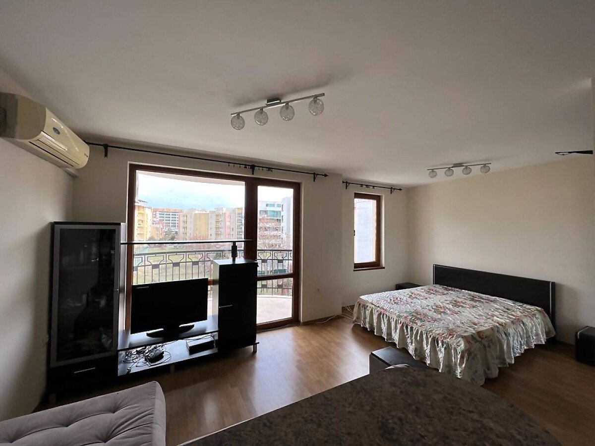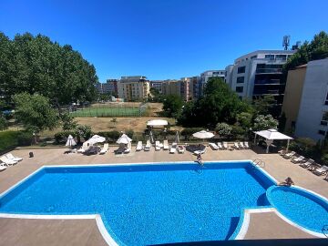 Прекрасна възможност за покупка на просторно и светло студио, което е напълно обзаведено и располага с всички удобства за комфортно живеене. Студиото се намира на 500м от прекрасните плажове, на най–известния курорт в България–Слънчев бряг. Самото студио се намира на трети етаж и е с площ52кв.м. Комплексът е добре поддържан, напълно озеленен, има чудесен басейн с детски кът. В студиото има чудесна и голяма тераса, с гледка към басейна. Студиото е подходящо за отдаване под наем и в самата сграда може да се живее целогодишно или сезонно.