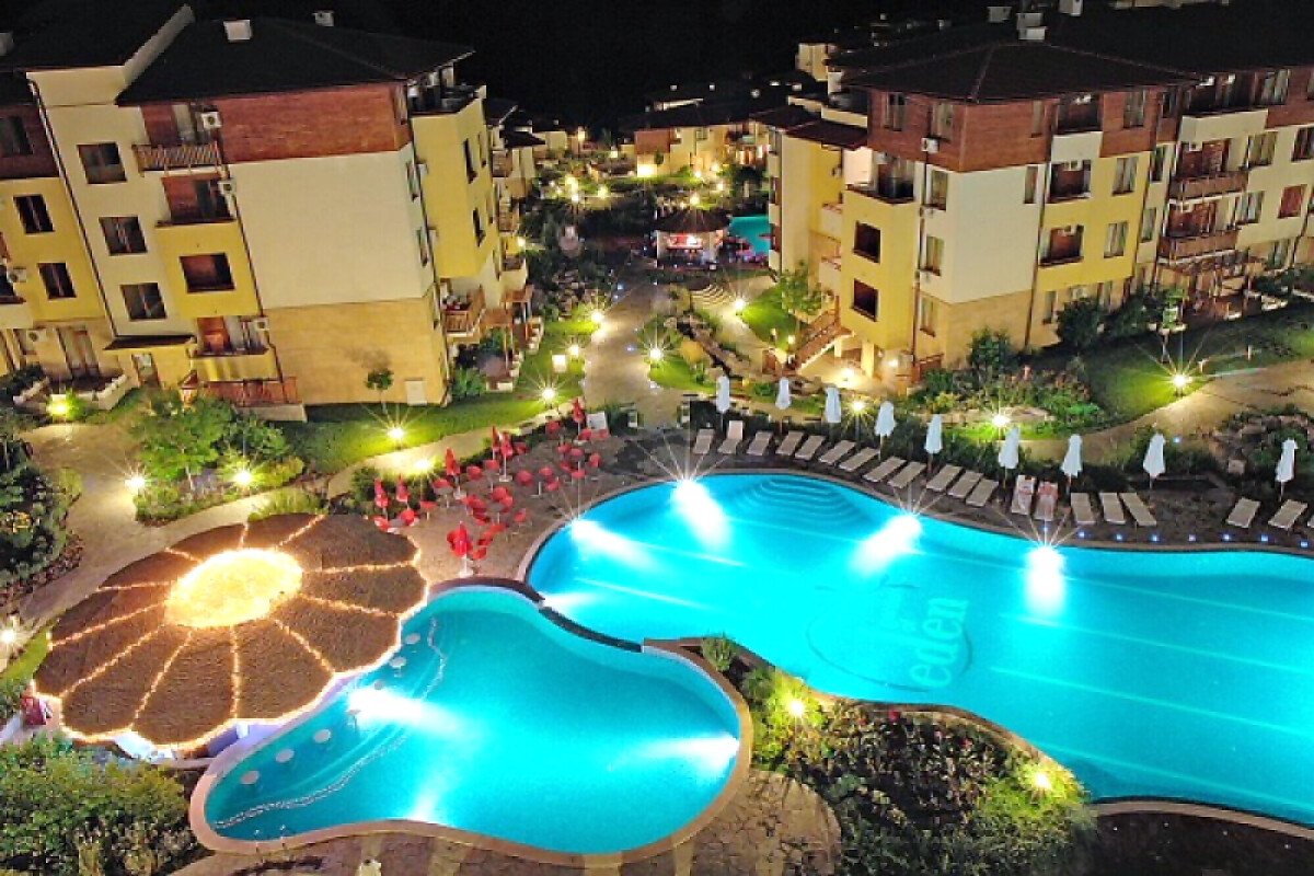 Комплекс „Райската градина“ е луксозен оазис, който се намира непосредствено до централната част на курорта Свети Влас. Заобиколен от красива природа и с уникална гледка към морето и залива на Несебър, това място предлага всичко необходима за Вашата пълноценна почивка.