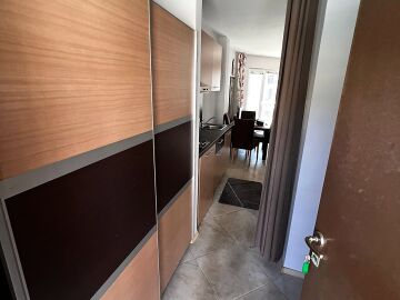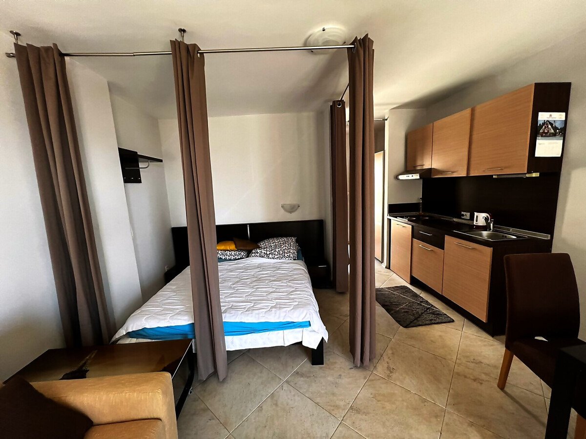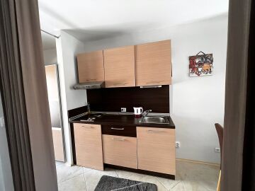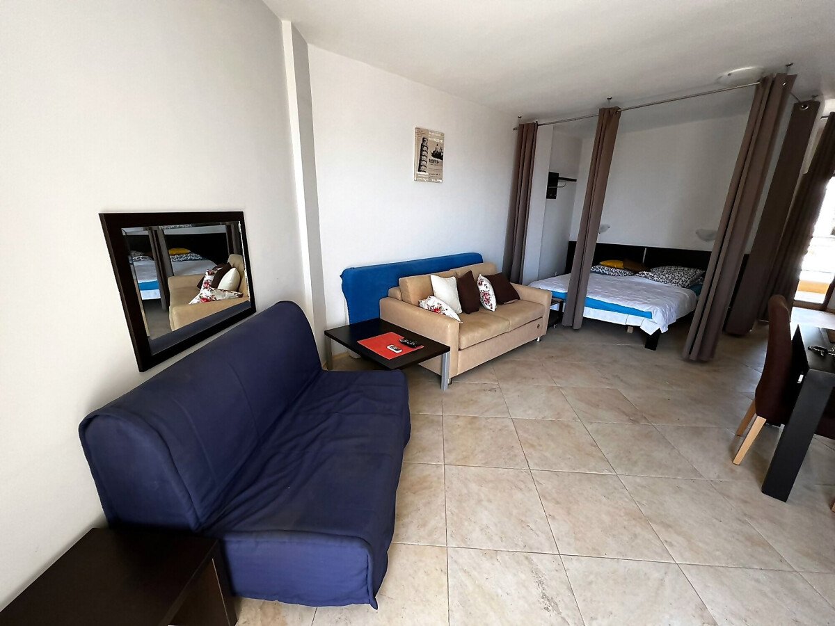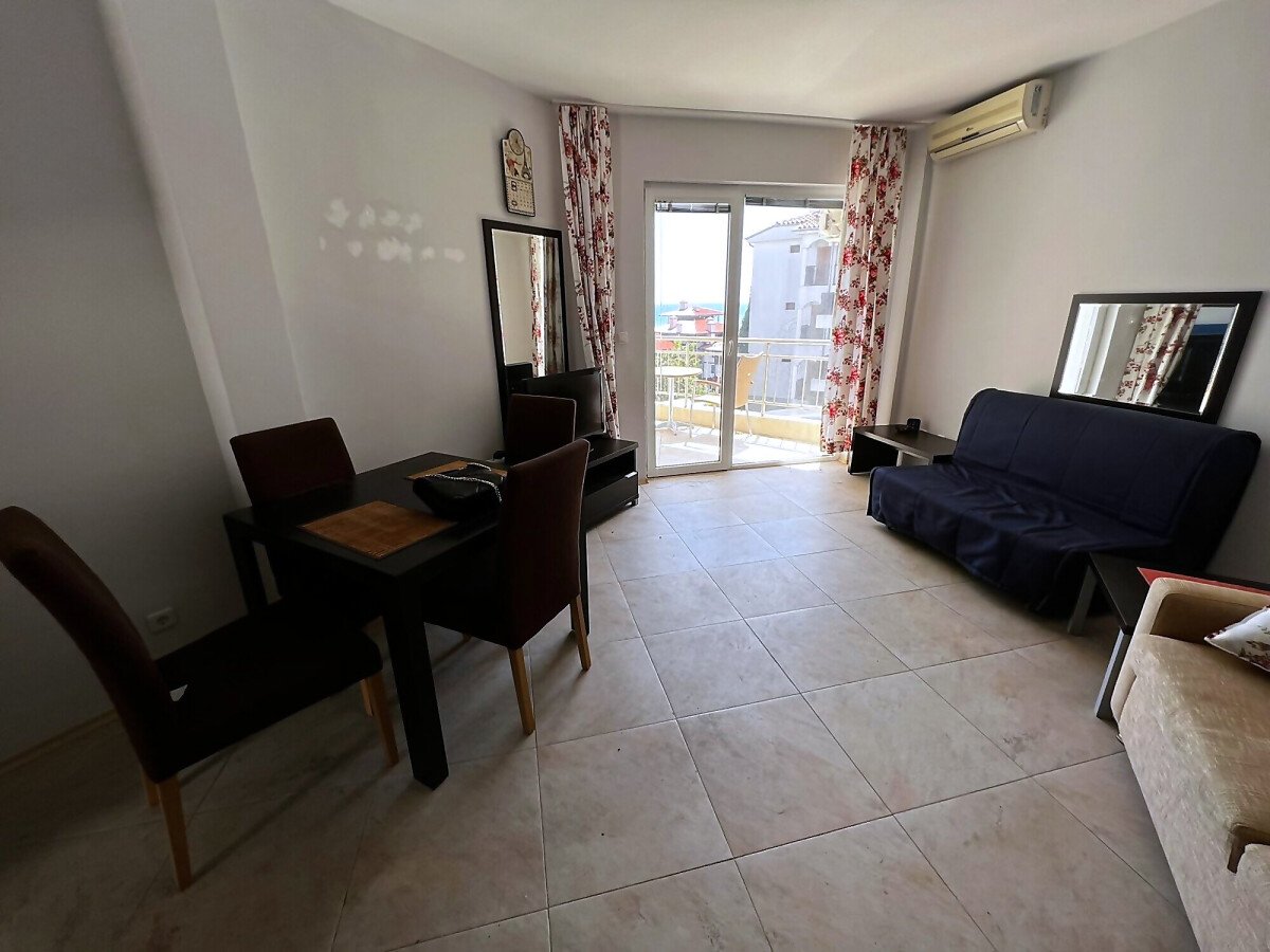 Стилно и уютно студио в комплекс Галатея. Студиото е доста просторно и светло, разполага с всекидневна, комбинирана с кухня и трапезария, антре, баня и прекрасна тераса с гледка към море. Самия комплекс разполага с басейн, подземен паркинг и фитнес. Комплексът се намира на пет минути пеша от яхтеното пристанище Марина Диневи и на 150 метра от морето.