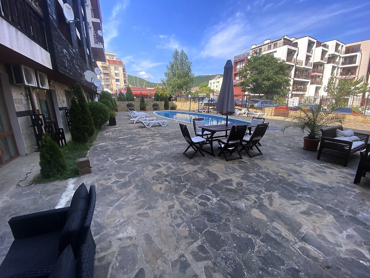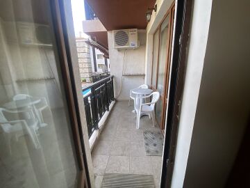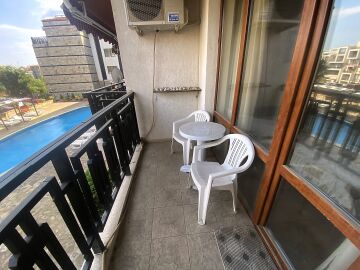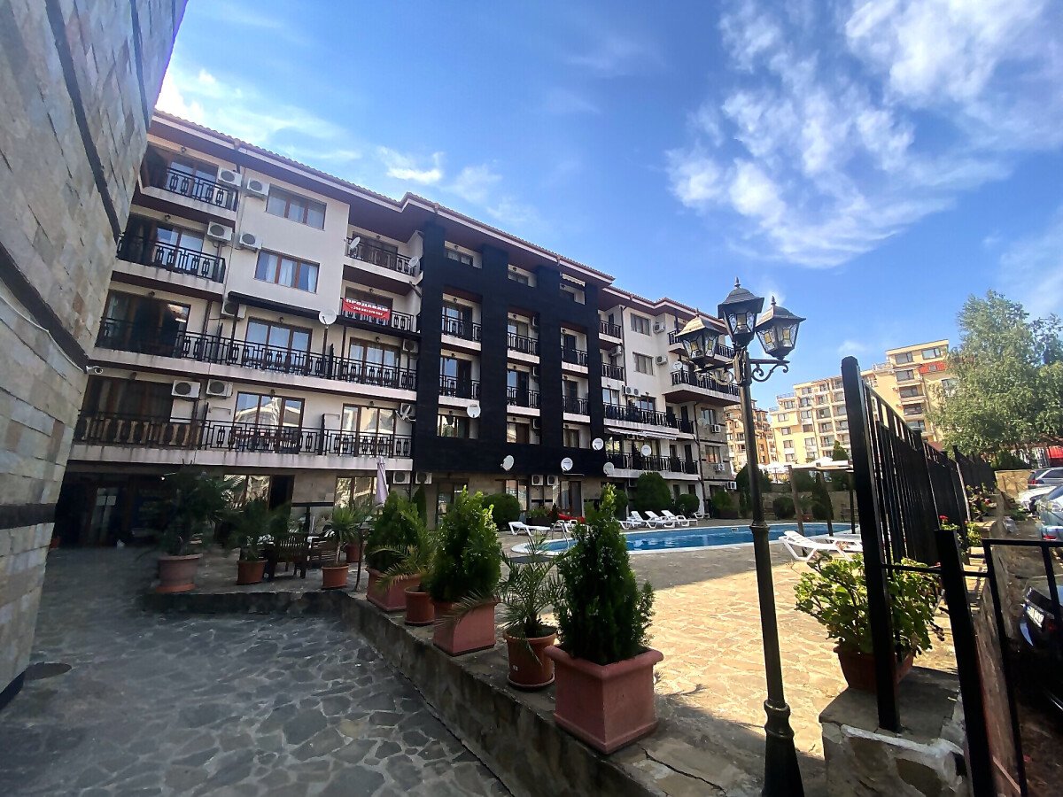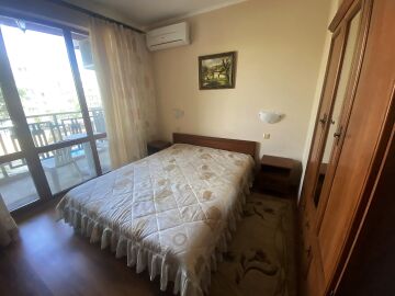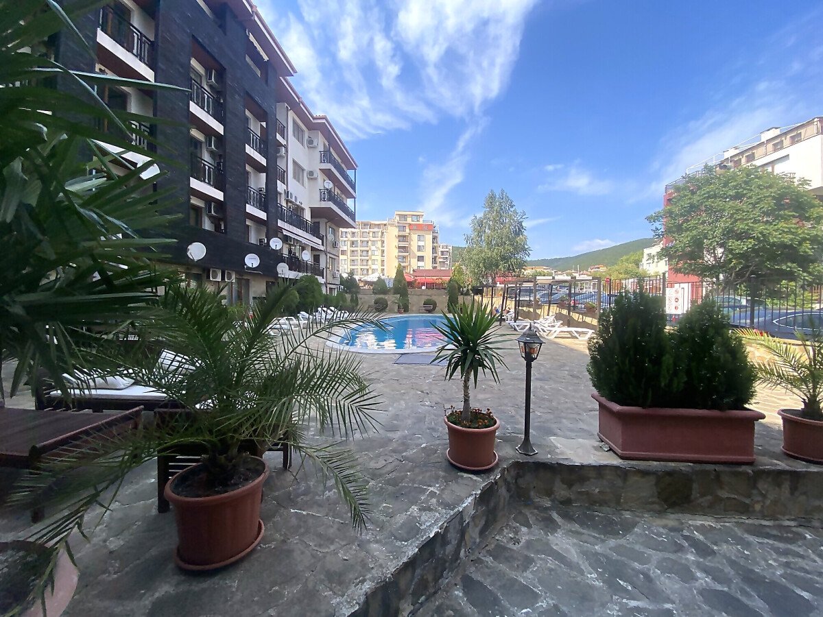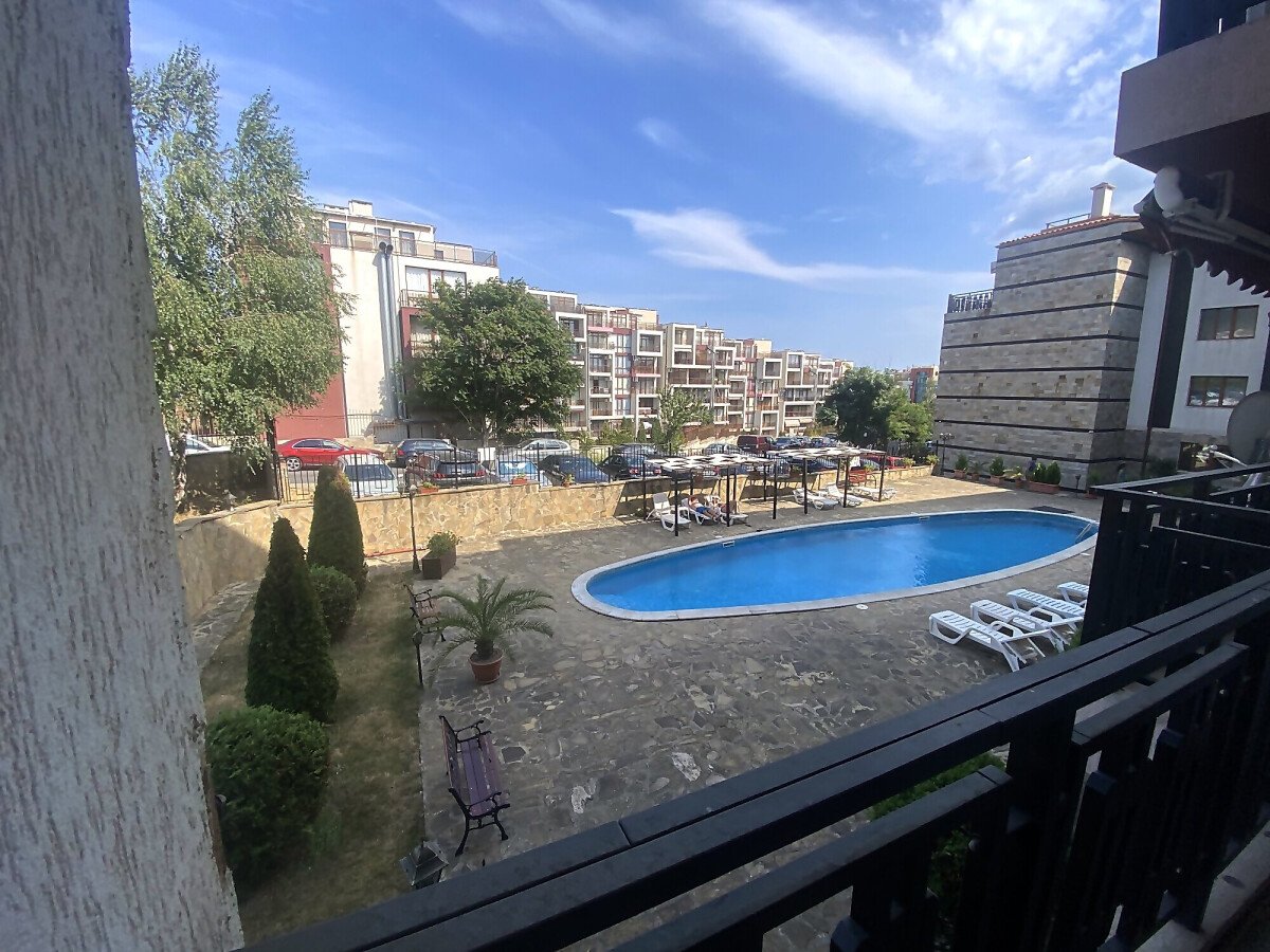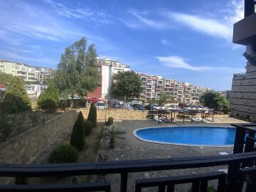 BG Properties Invest ви предлага чудесен двуестаен апартамент в комплекс Панорама Бей в Свети Влас, който се намира само на 300м от море и на 1,2 километра от пристанище Марина Диневи. Апартаментът е напълно обзаведен, разполага с просторна всекидневна, светла спалня, кухня, баня и уютна тераса с гледка към басейна и градина. На територията на самия комплекс има басейн, детска площадка и безплатен паркинг. Апартаментът се намира на втори етаж и е с площ 74кв.м.