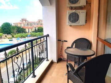Самия апартамент е голям и разполага с антре, просторна всекидневна, две прекрасни спални, две бани и две много уютни тераси с гледка към басейн и аквапарк.