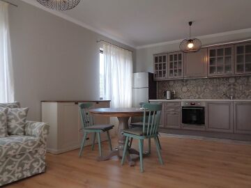 Всеки апартамент разполага с оборудвана кухня с вградени електроуреди Eurolux - керамичен плот, фурна, аспиратор, пералня, хладилник.