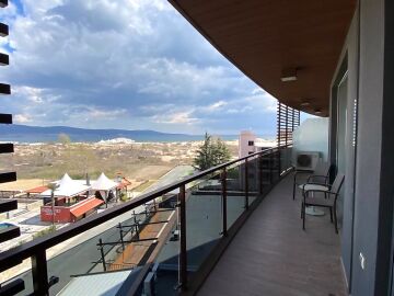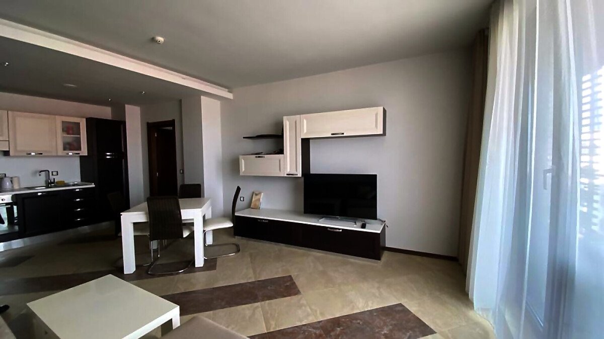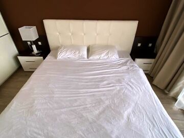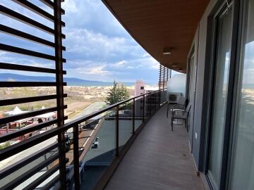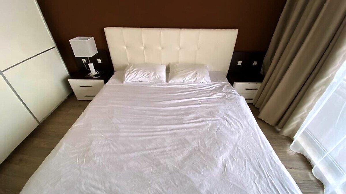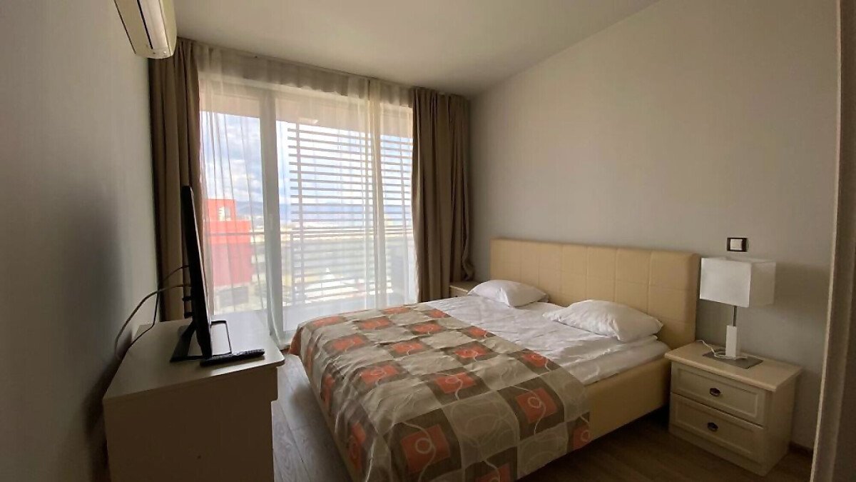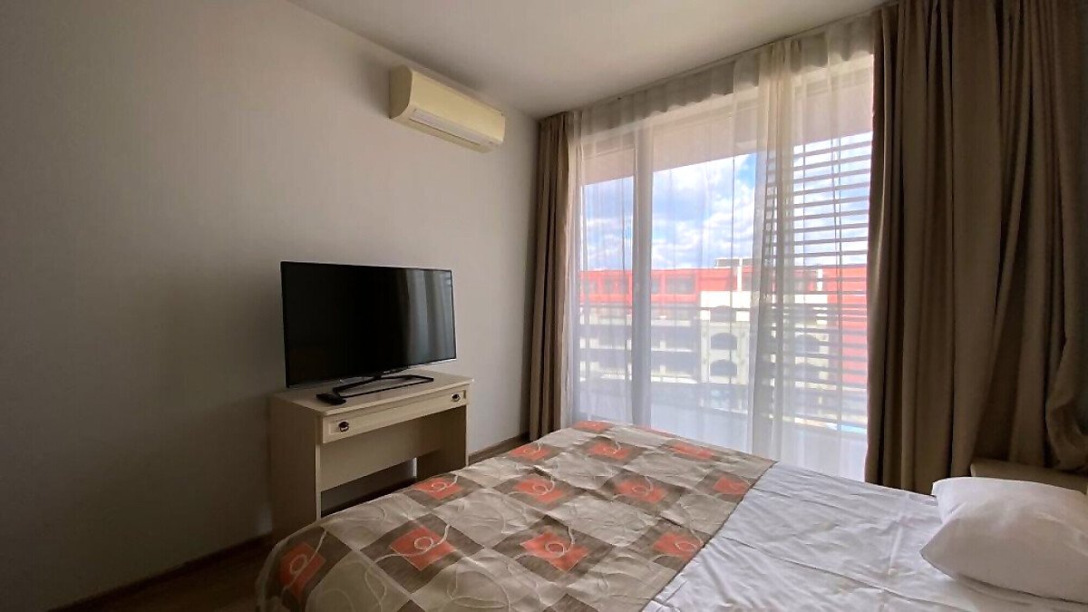 Апартаментът е тристаен, с чудесна и просторна всекидневна, две светли спални, баня и голяма тераса с гледка към басейна.