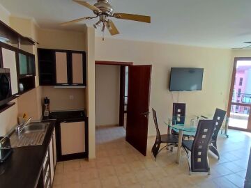 Състои се от всекидневна с оборудвана кухня, малко антре, 2 спални, 2 бани (едната е с вана) и балкон.
