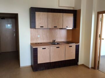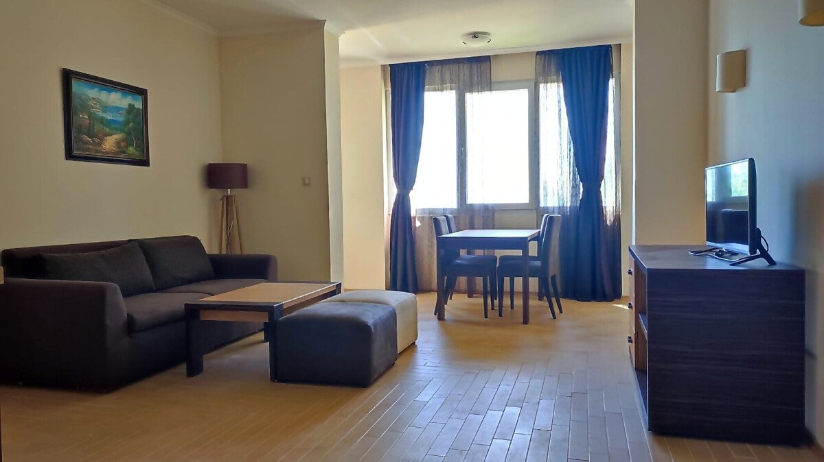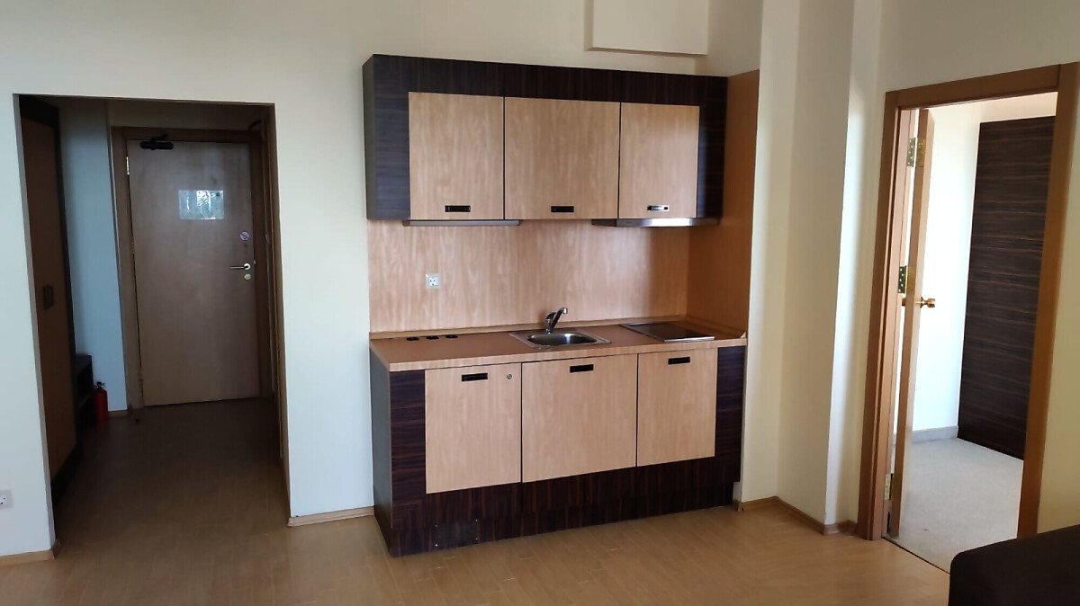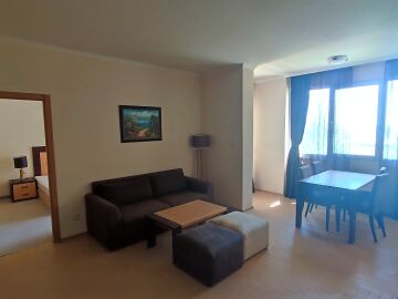 Апартаментът се състои от антре, всекидневна с кухня, спалня, баня и голяма тераса с панорамна гледка към басейна и море.
