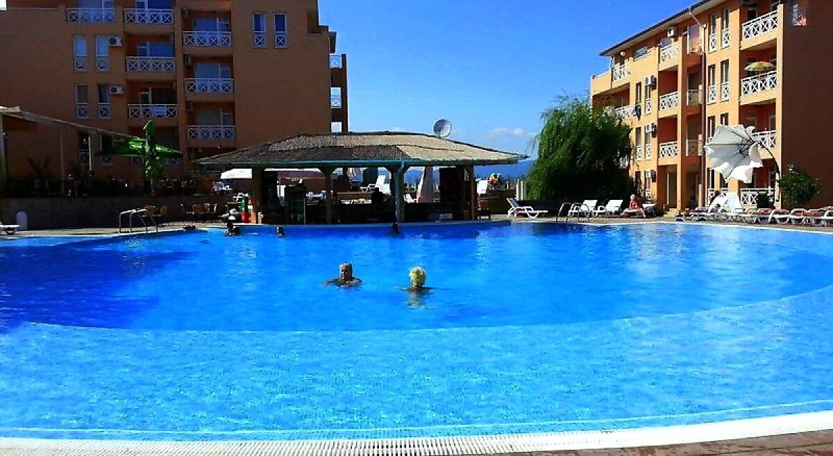 Комплексът на територията си разполага с пет големи басейна с място за деца, красива озеленена градина, голям тенис корт и футболно игрище, детска площадка и паркинг.
