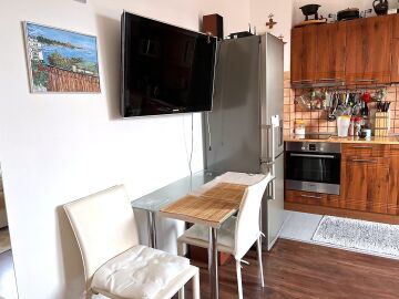 Плюсовете на апартамент са: чудесна гледка към море, топъл под и този апартамент никога не се е давал под наем.